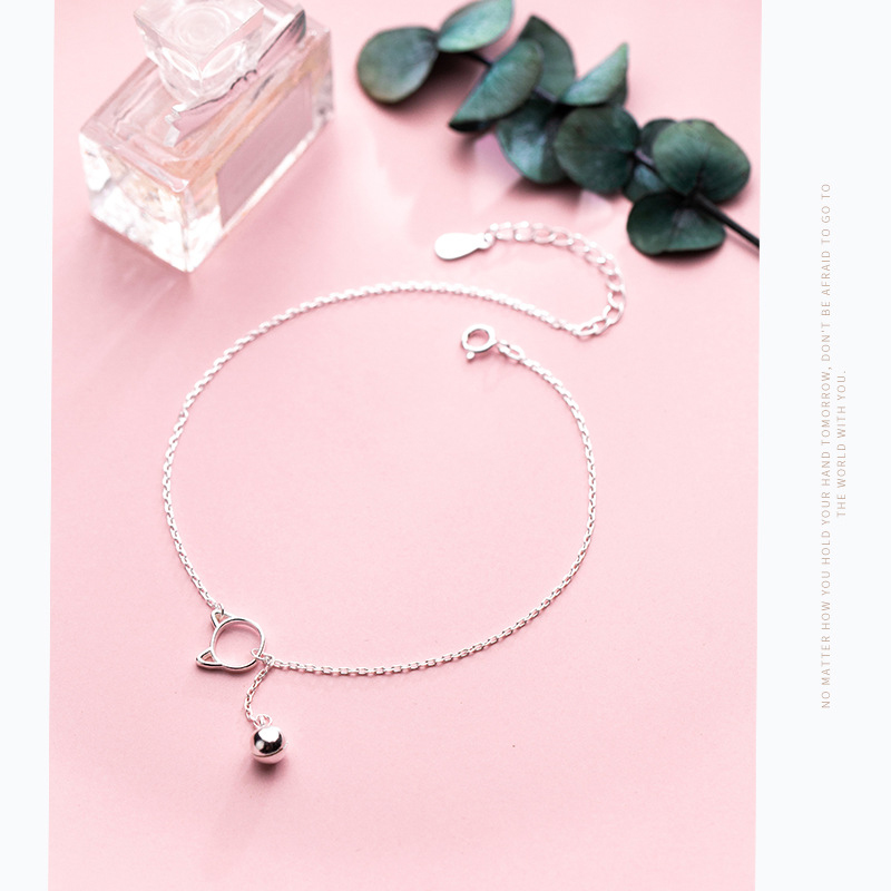 Colusiwei Kitty and Bell Silver Anklet for Women Sterling Silver 925 Bracelet for Ankle and Leg Foot Fine Jewelry Gift