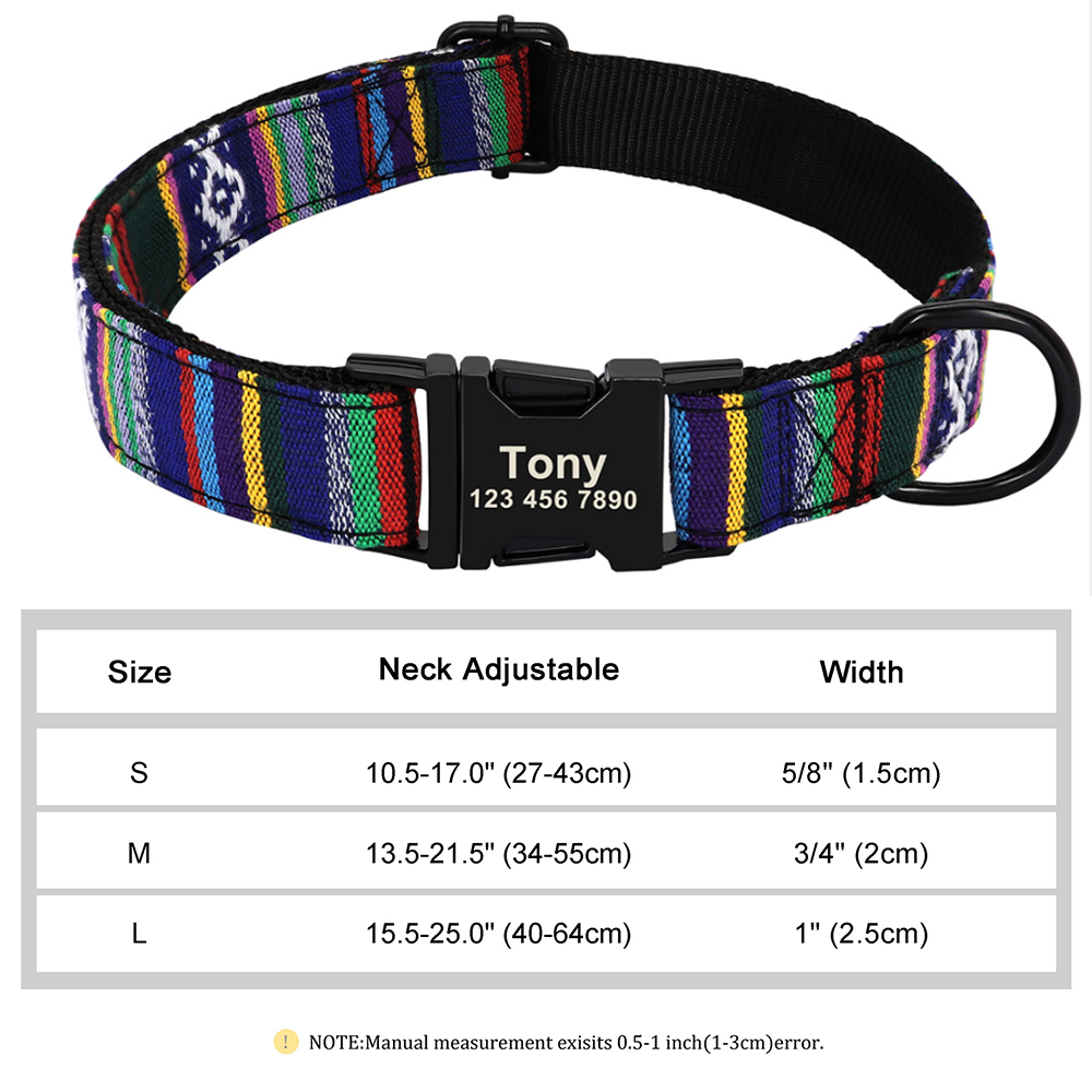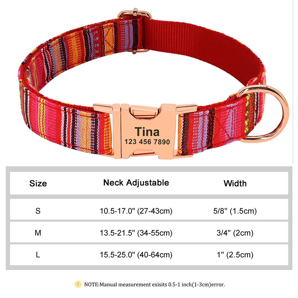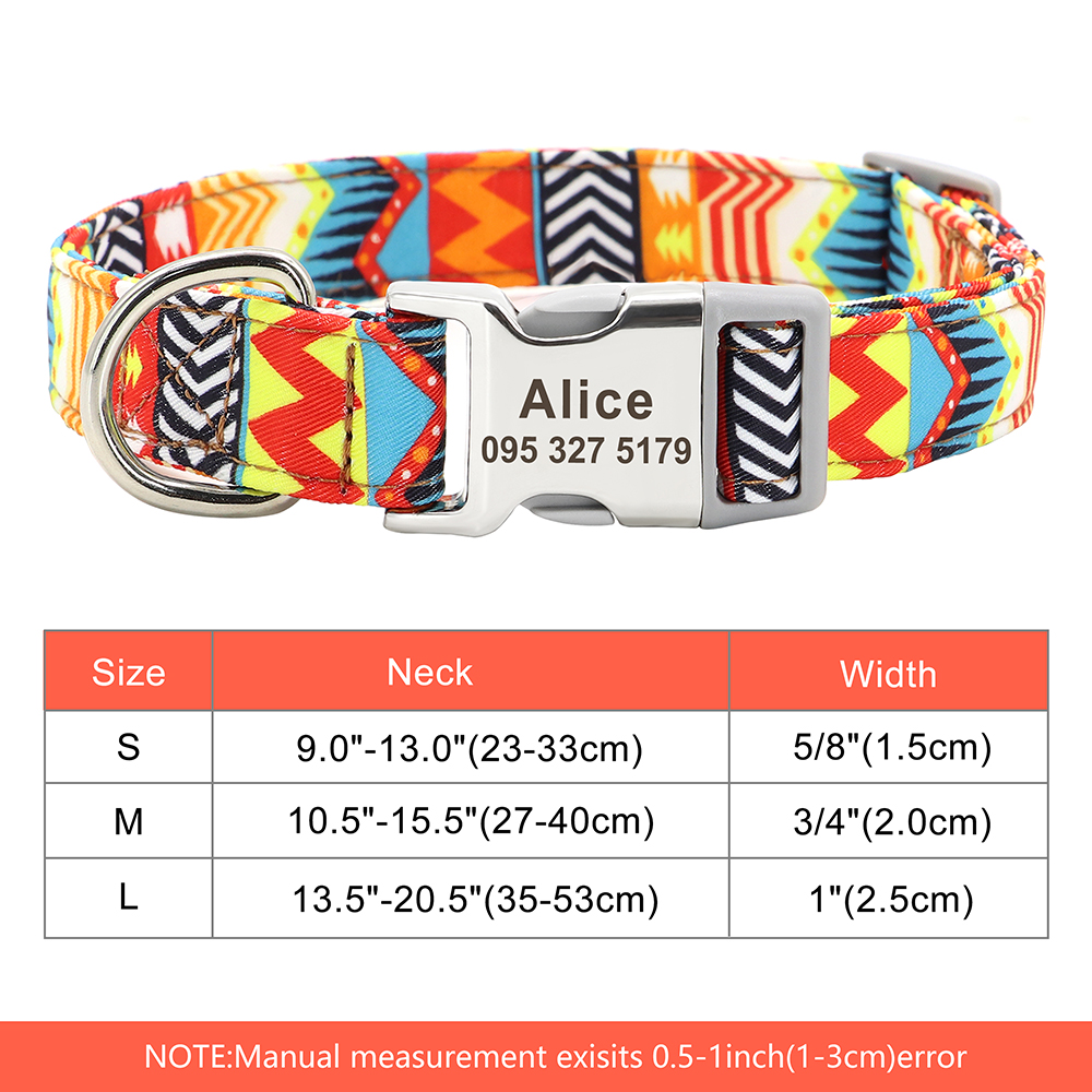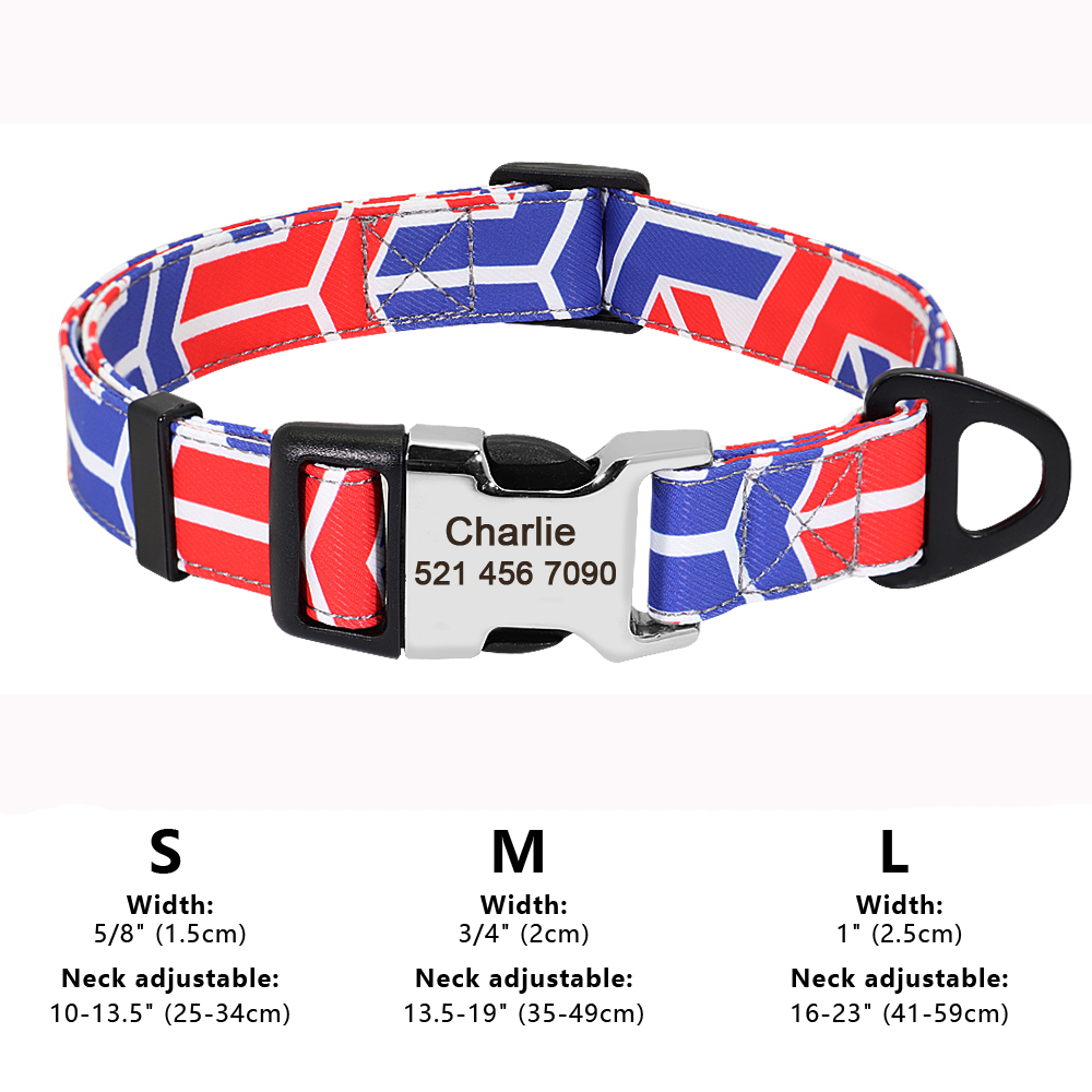 Name: Custom Large Dog Collar Cute Print Personalized Pet Collar Nylon Puppy Dogs ID Collars Engraved Name for Small Medium Large Dog