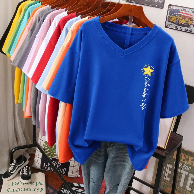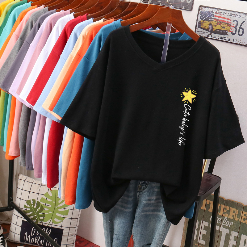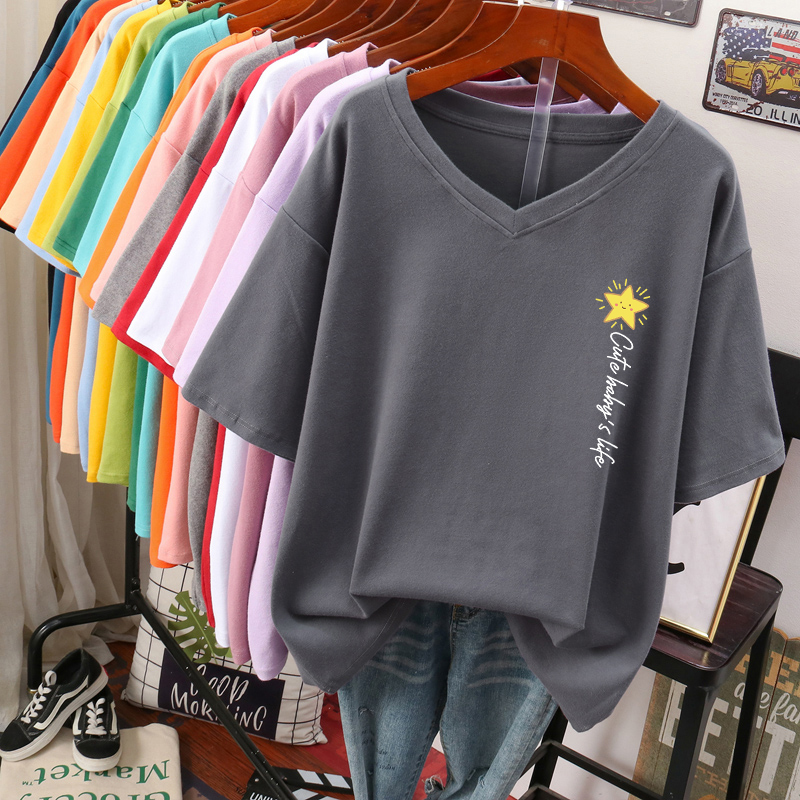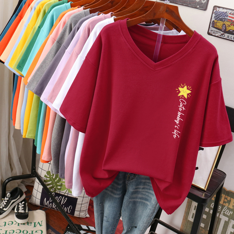 DAYIFUN Plus Size T Shirt L-6XL Tshirt Short Sleeve Women's Top Summer Stars Print Casual O Neck Oversized T Shirts