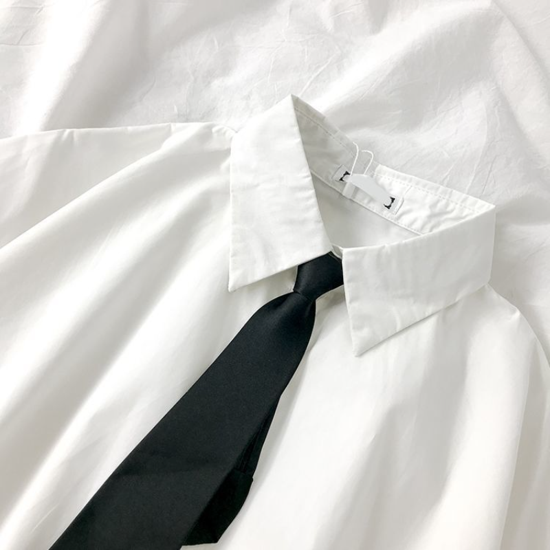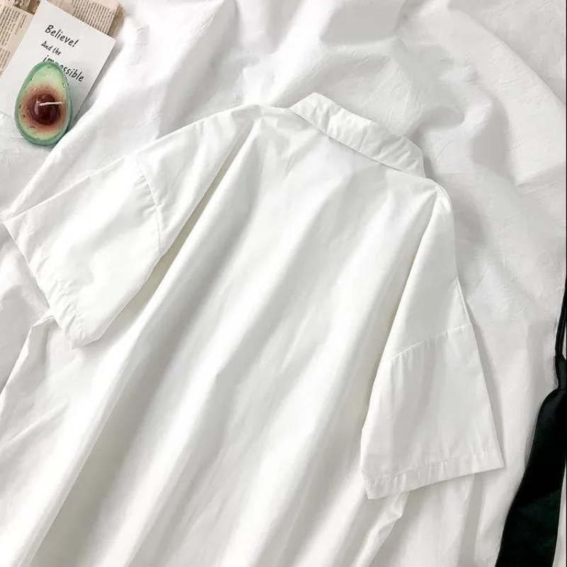 DAYIFUN White Shirts Women with Tie Japanese Style Preppy Students BF Oversized Blouse Simple Solid Loose Summer Top L3204