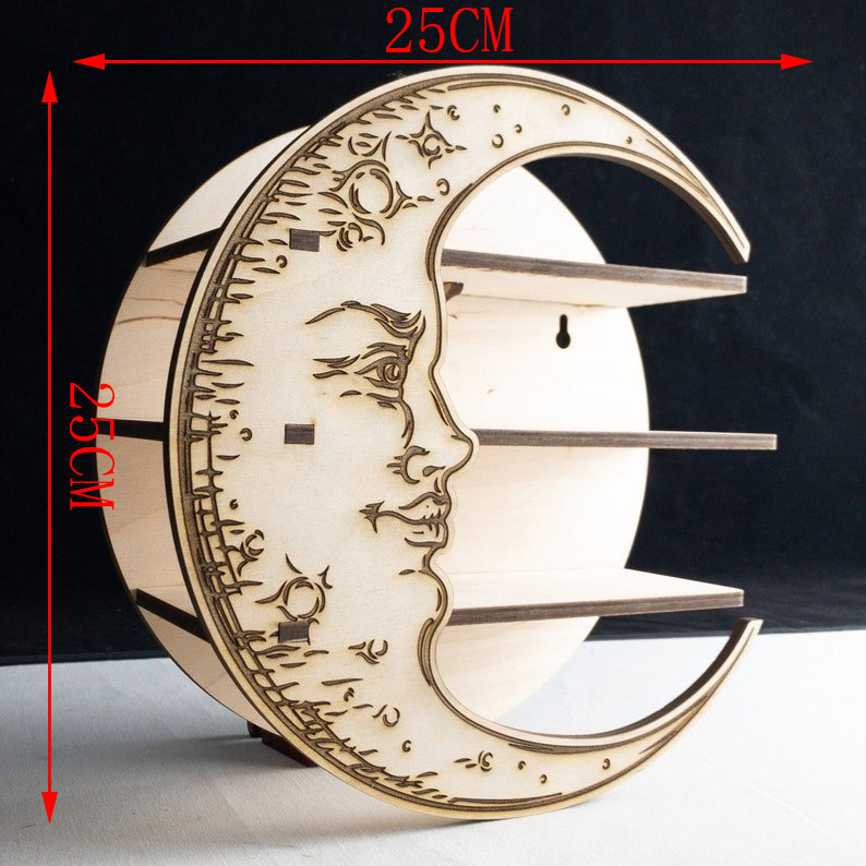 Decor for Crystal Essential Oil Nursery Wooden Moon Shelf Living Room Rustic Display Rack Wall Hanging Storage Rack Bedroom Home