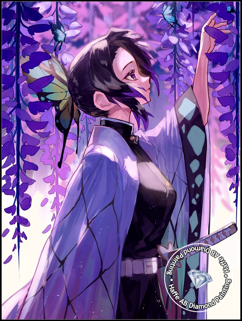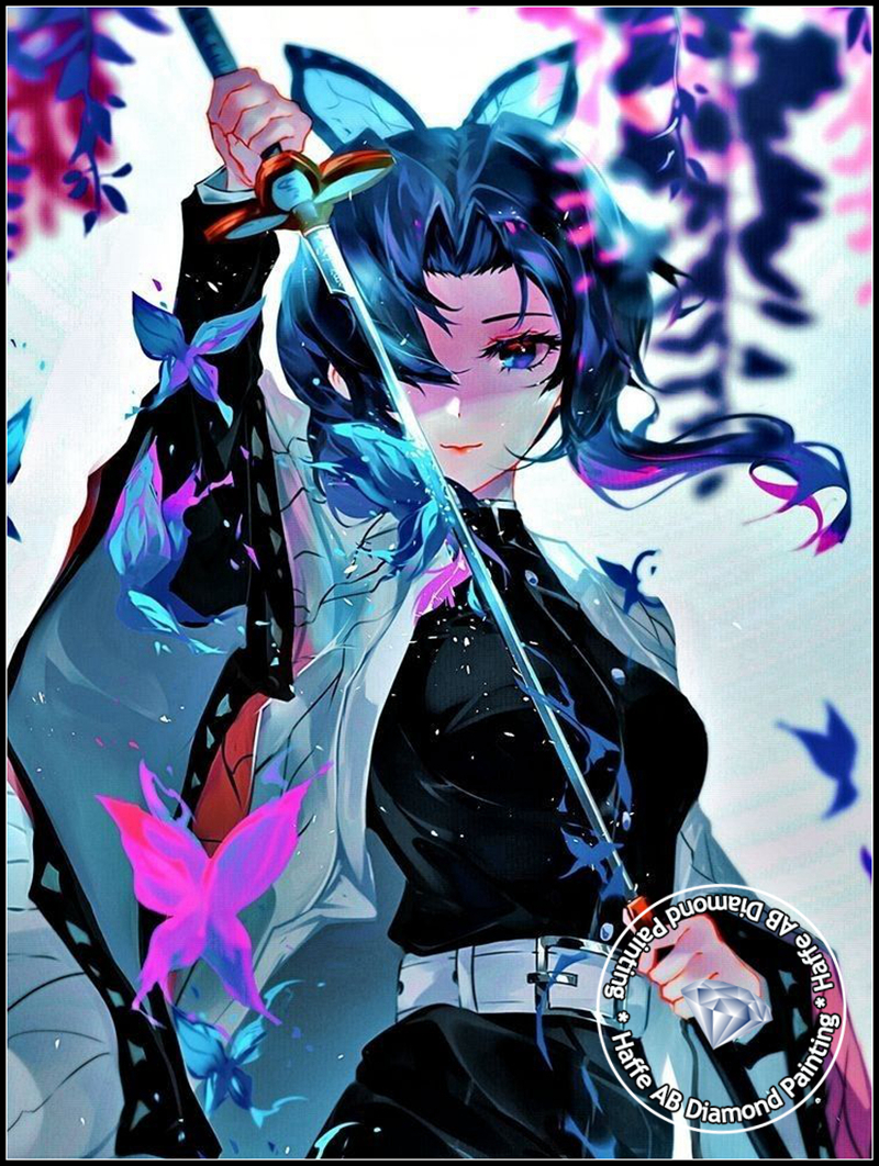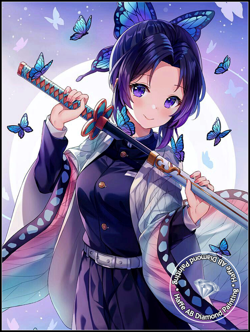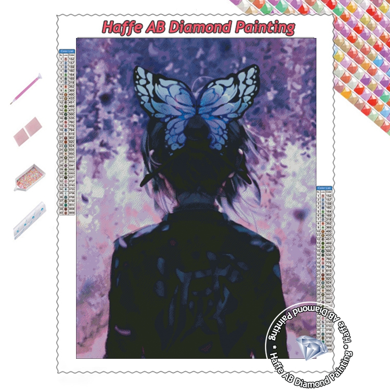 Demon Slayer AB Diamond Art Painting Japanese Anime Girl Shinobu Kochou WIth Butterfly Scenery Mosaic Cross Stitch Home Decor