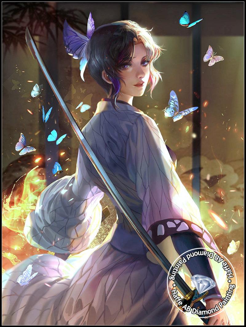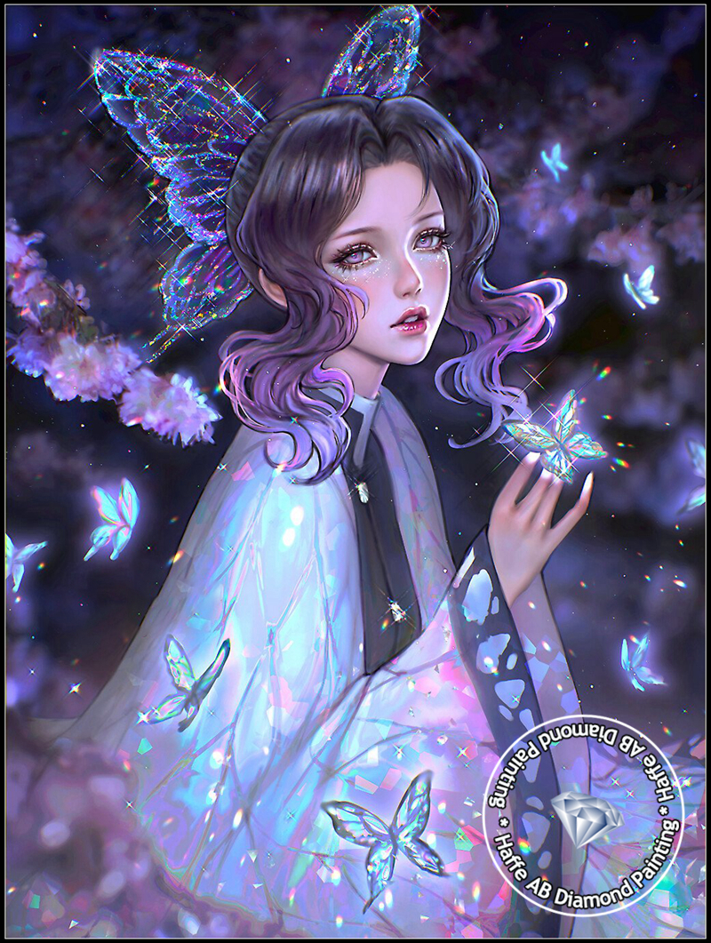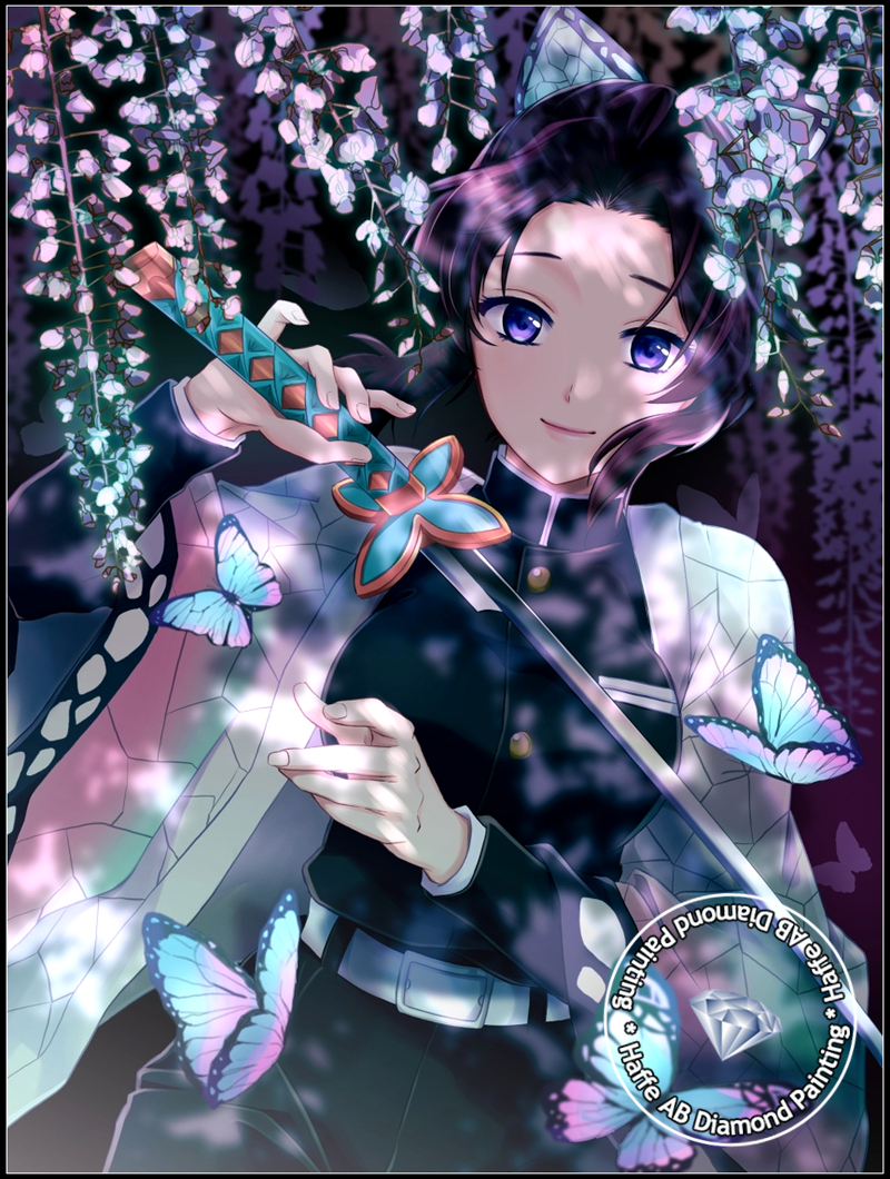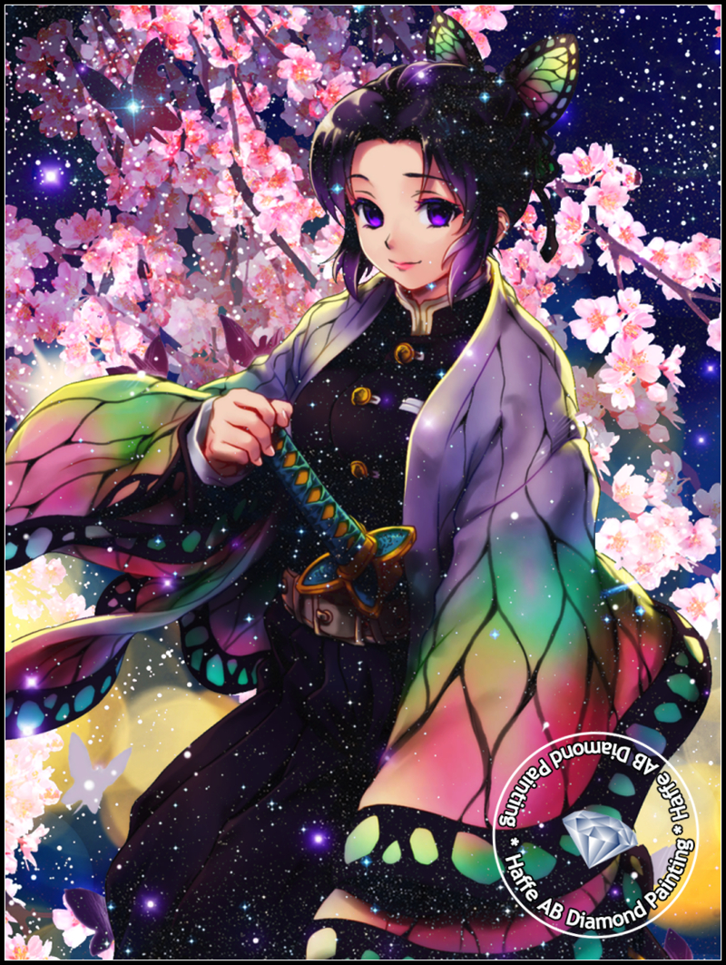 Demon Slayer AB Diamond Art Painting Japanese Anime Girl Shinobu Kochou WIth Butterfly Scenery Mosaic Cross Stitch Home Decor