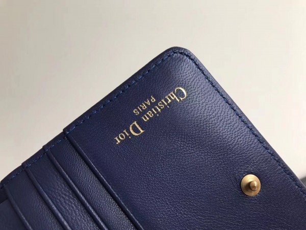 Dior French DiorAddict Wallet In Navy Blue Lambskin
