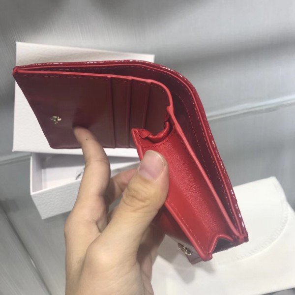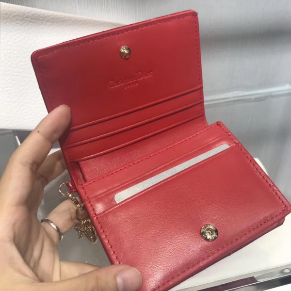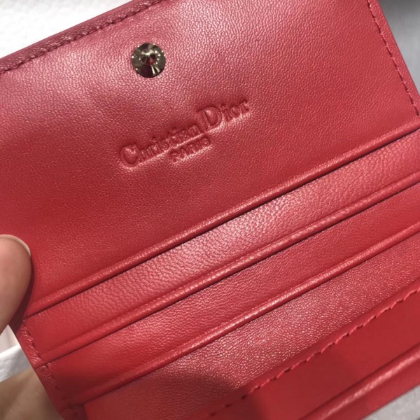 Dior Mini Lady Dior Wallet In Red Patent Leather