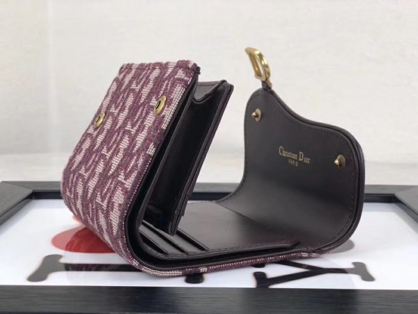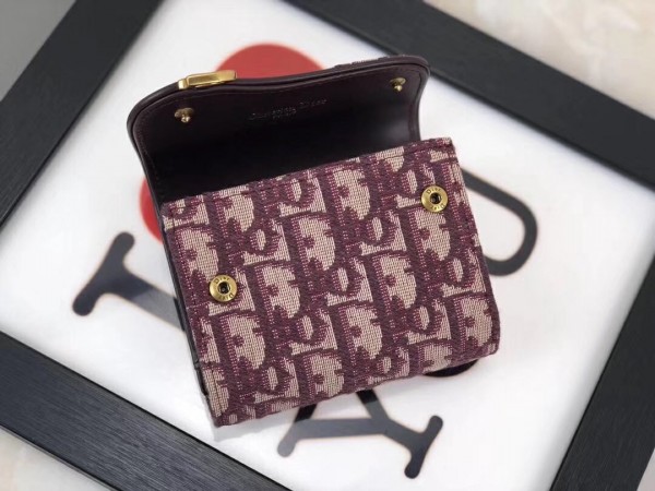 Dior Mini Saddle Tri-Fold Wallet In Bordeaux Oblique Canvas