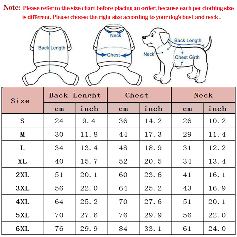 Note:Please refer to the size chart before placing an order, because each breed of pet has a different body shape. First choose a chest and neck that matches your dog's size, then consider the dog's length.