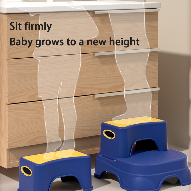 The smooth handles on the left and right sides allow children to easily pick up the stool. Bathroom stools perform better on clean, dry, oil-free floors.