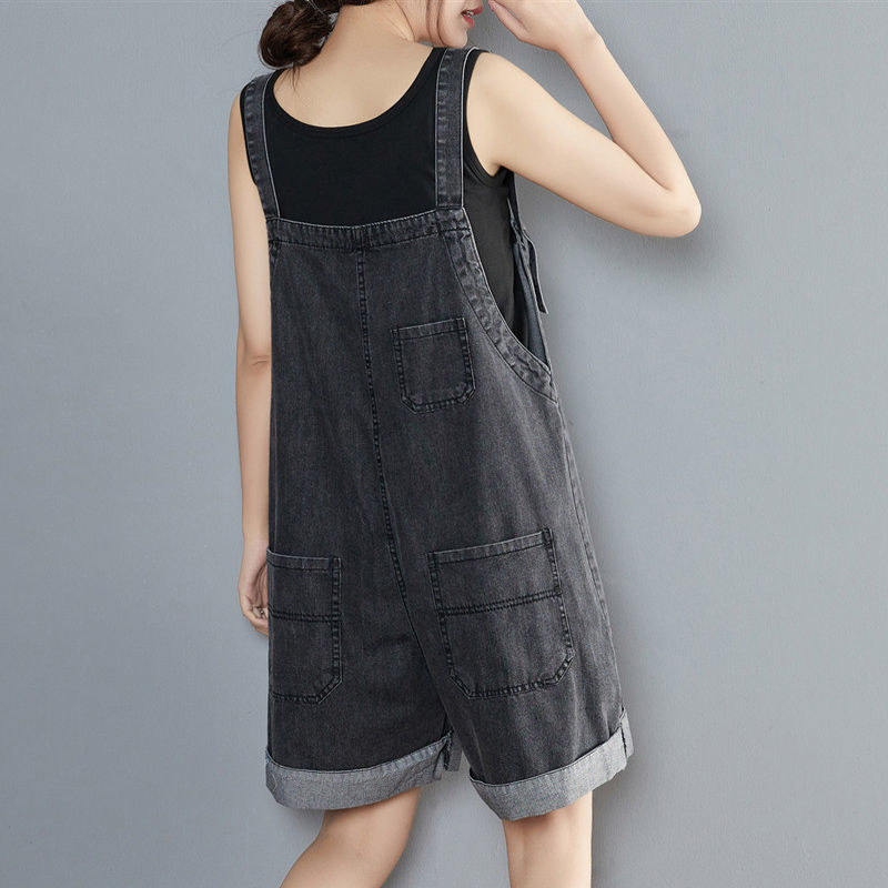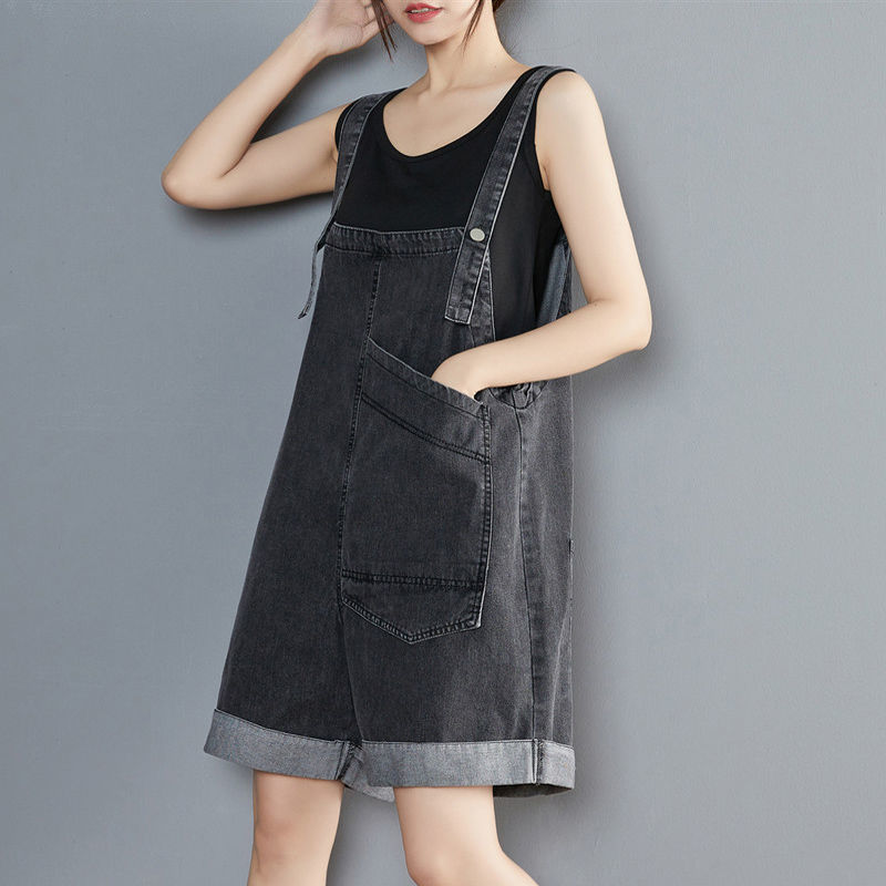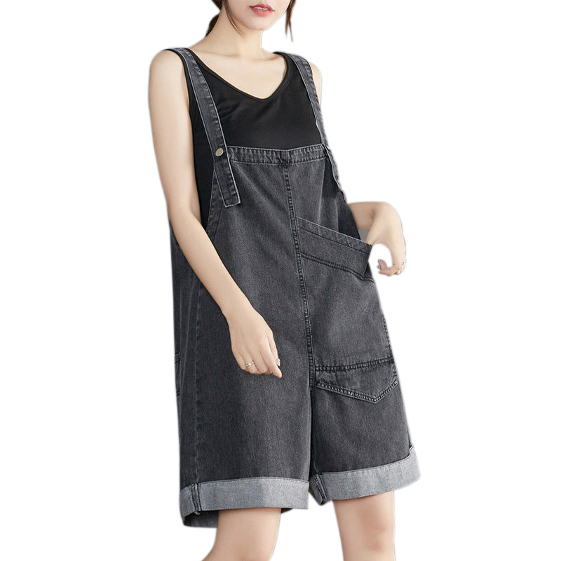 Double Sided Wear Suspender Trousers Big Pocket Jeans Braces Shorts Loose Cowboy Wide Leg Pants Women's Denim Overalls Jumpsuit