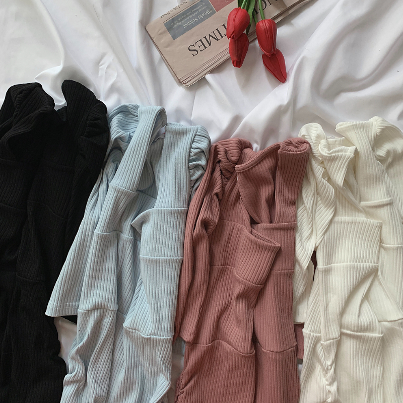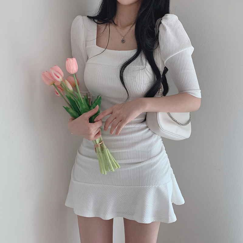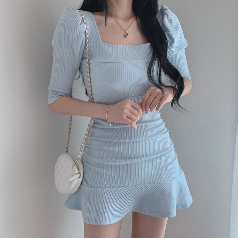 Dresses Women Slim Solid Ulzzang Female 4 Colors Streetwear Summer Leisure Mini Puff Sleeve Sexy All-match Soft Vestido