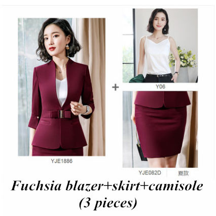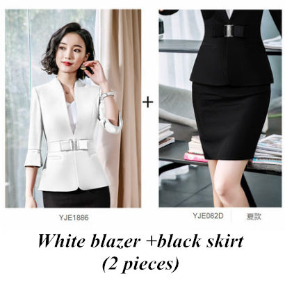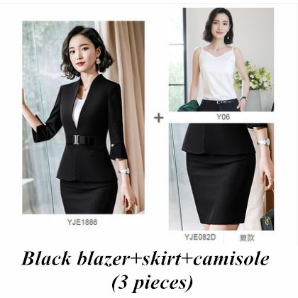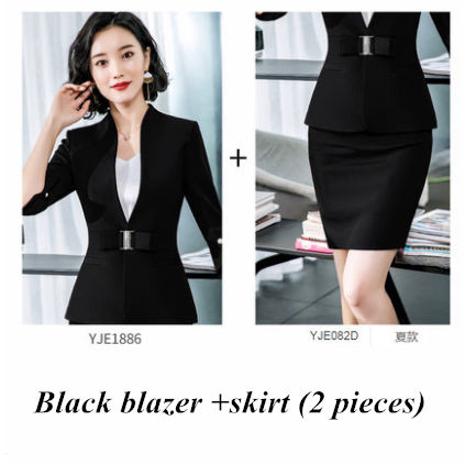 Dushicolorful Office Clothes Spring Summer Women Skirt Suits Egelant Ladies Formal Wear Two Piece Skirt Set Uniform Black