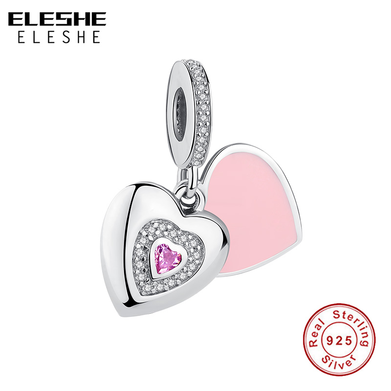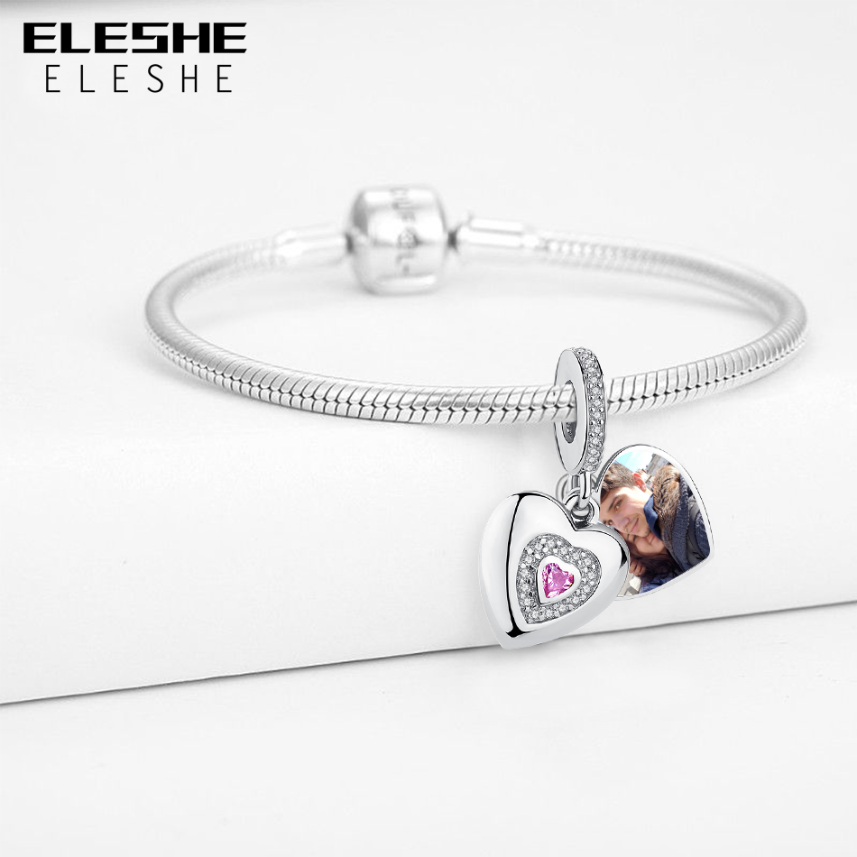 ELESHE 925 Sterling Silver Bead Forever Love Heart Pendant Charm Fit Original Bracelet Personalized Custom Po DIY Jewelry