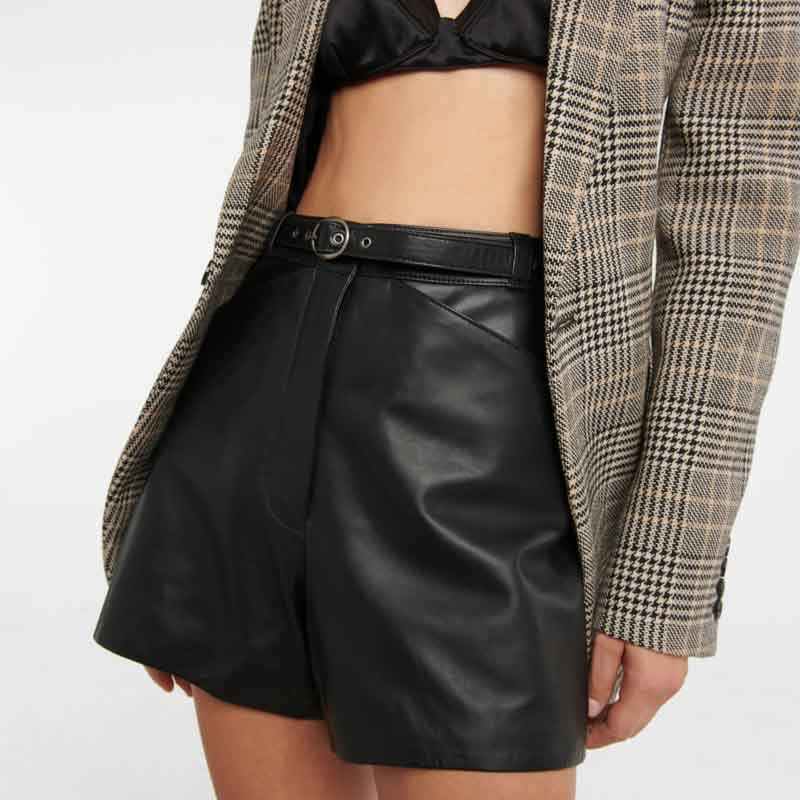 Early Autumn Genuine Leather Black Shorts Women Runway High Waist Pocket Design Sexy Short Pants Elegant Clothes