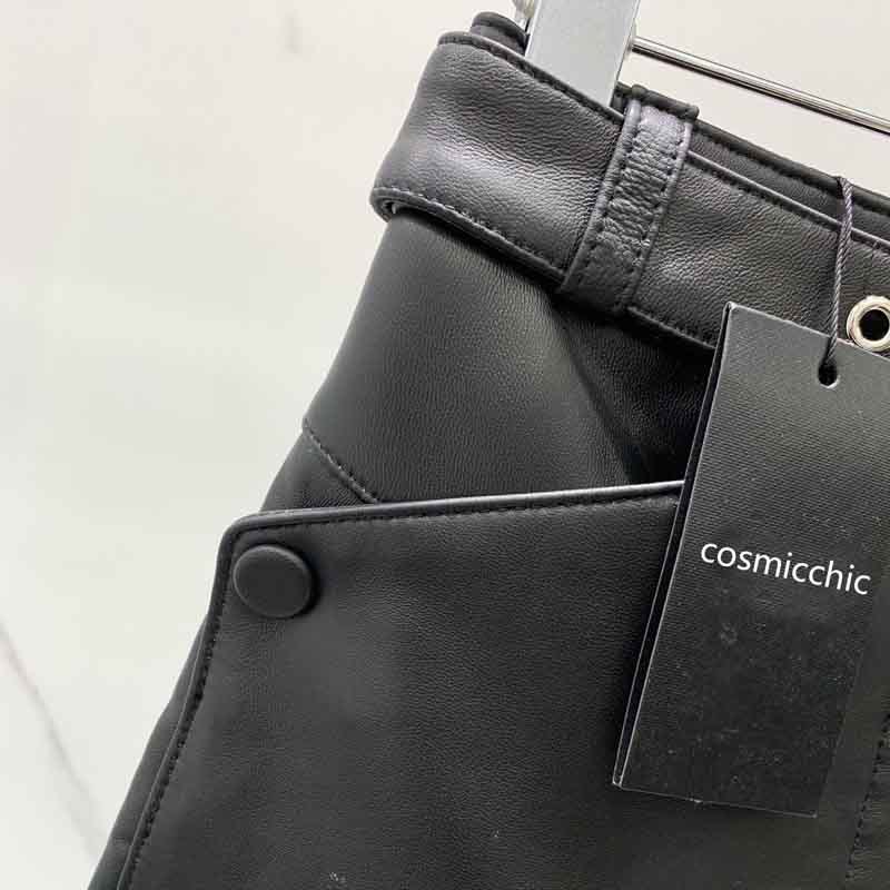 Early Autumn Genuine Leather Black Shorts Women Fashion Runway High Waist Pocket Design Sexy Short  Pants Elegant Luxury Clothes.A0780