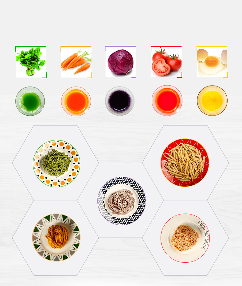 * You can add egg liquid, vegetable juice (soft vegetable leaves can be put directly, hard vegetables must be juiced), etc. to make noodles with different flavors, which are healthy and delicious;
