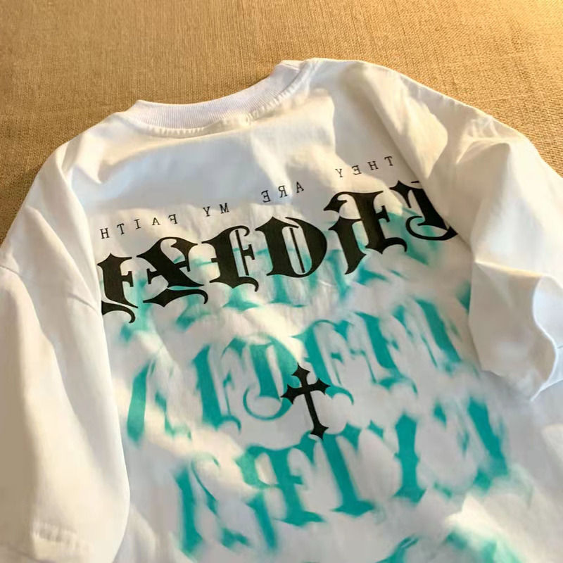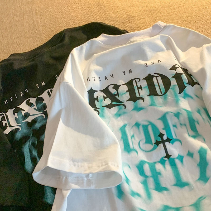 European and American short sleeve t-shirt men's street letter printing lazy style loose trend woman tshirts