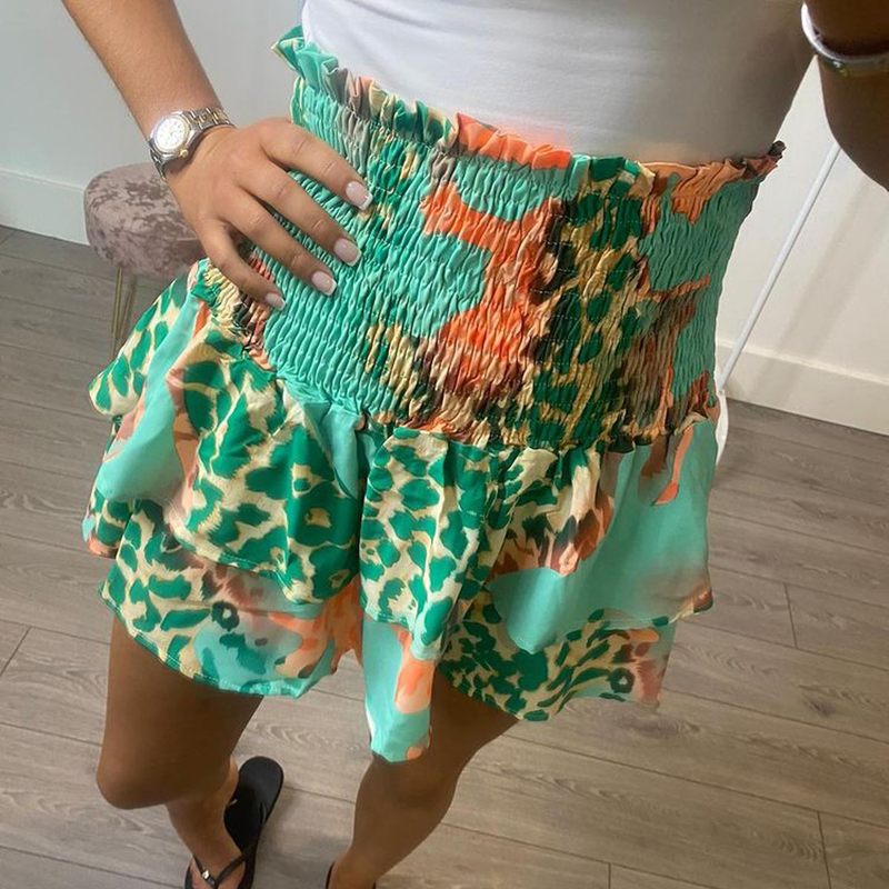 Fandy Lokar Elastic Waist Leopard Printed Skirts Women Ruffle Skirt Women Elegant Mini Cake Skirts Female Ladies