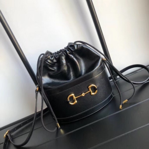 Gucci 1955 Horsebit Bucket Bag In Noir Calfskin