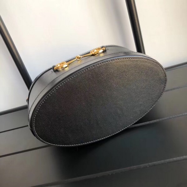 Inspired by archival designs, Gucci 1955 Horsebit bucket bag unifies the original details first introduced over six decades ago with a modern spirit, highlighting the Horsebit. Part of Gucci’s genetic code, the double ring and bar design has been established as one of the most distinctive elements among the House symbols borrowed from the equestrian world. The hardware is paired with a contemporary mix of materials, combining textured and soft black leather to create a unique tonal effect.