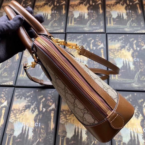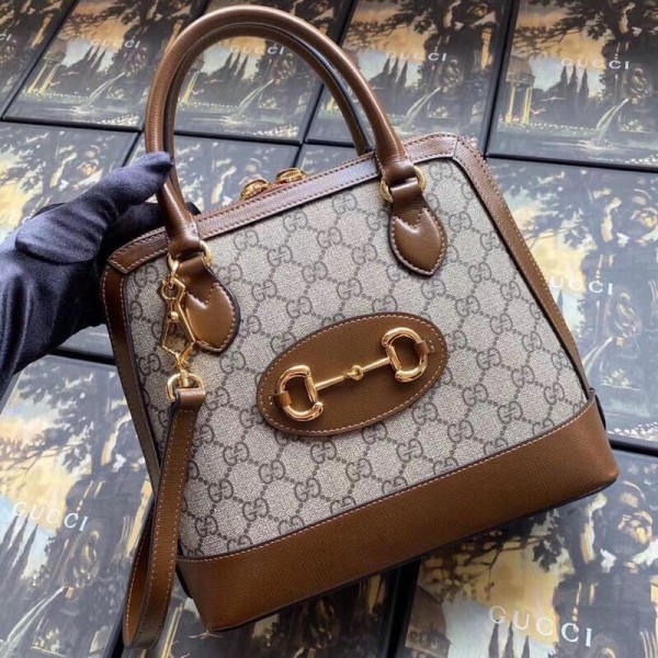 A new silhouette introduced to the Gucci 1955 Horsebit line for Spring Summer 2020, the top handle has a domed shape with an optional leather shoulder strap, crafted from GG Supreme canvas and leather. The collection unifies details first introduced on the original bag that inspired the line from over six decades ago with a modern spirit, highlighting the Horsebit. Part of Gucci’s genetic code, the double ring and bar design has been established as one of the most distinctive elements among the House symbols borrowed from the equestrian world.