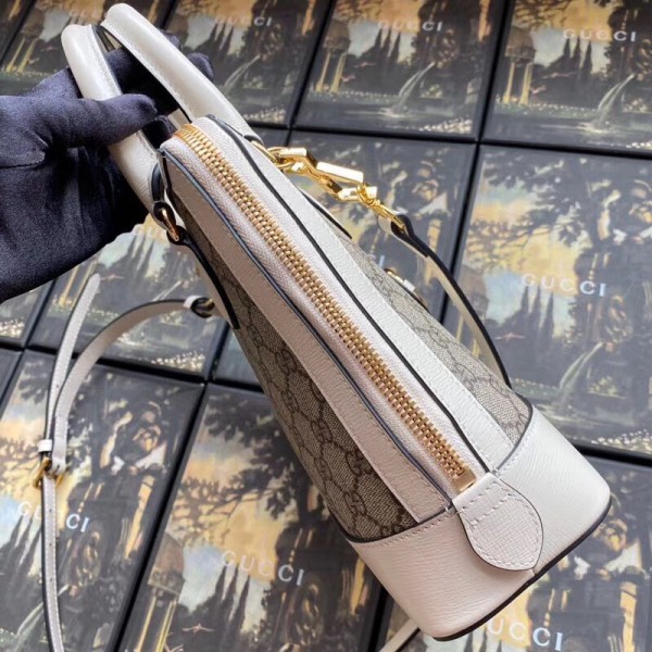 Gucci 1955 Horsebit Small Top Handle Bag In GG Supreme With White Trim