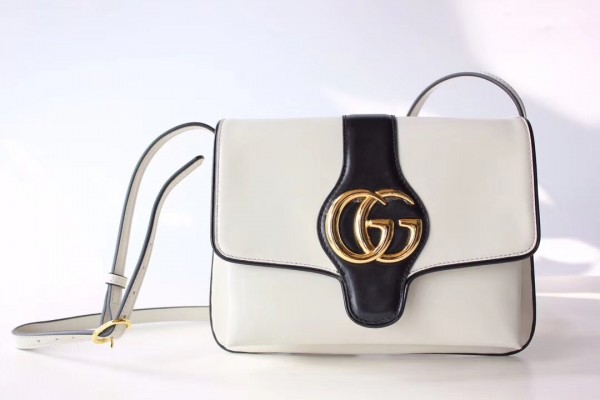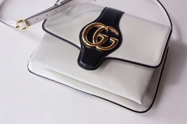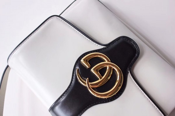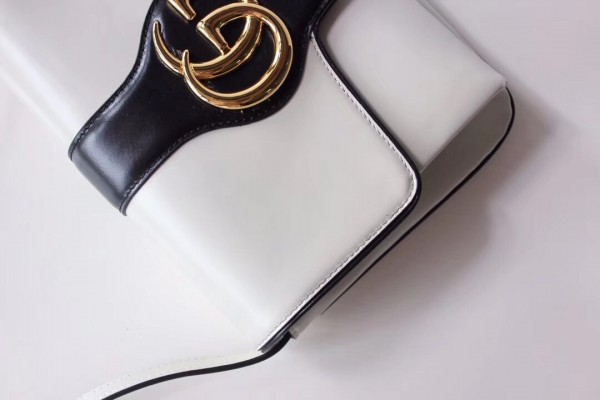 The medium Arli shoulder bag is designed in a bold black and white combination for Pre-Fall 2019. The front flap is enriched with the Double G hardware in shiny gold-toned metal—a House code brought back from the 1970s archives. The retro inspired silhouette was first presented in the Cruise 2019 fashion show, revealed in the evocative setting of the Roman necropolis of Promenade des Alyscamps, in the French town of Arles—which gives the name to the line.