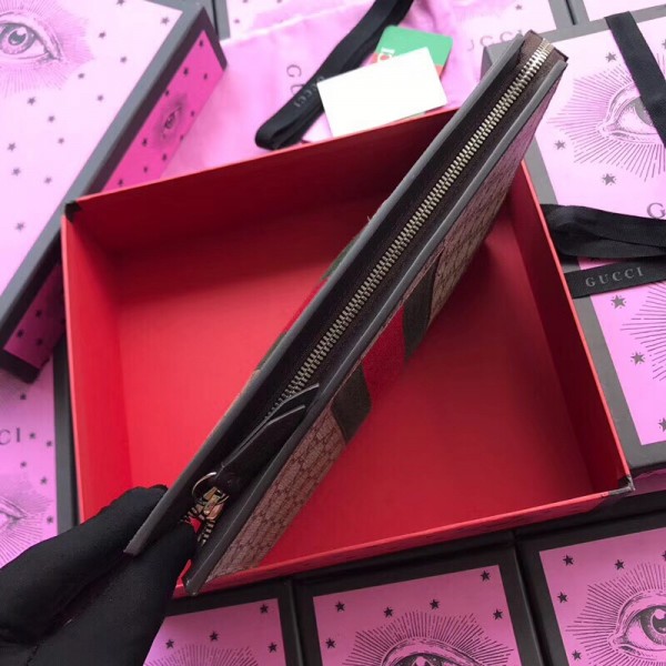 Gucci Beige GG Supreme Web Portfolio Pouch