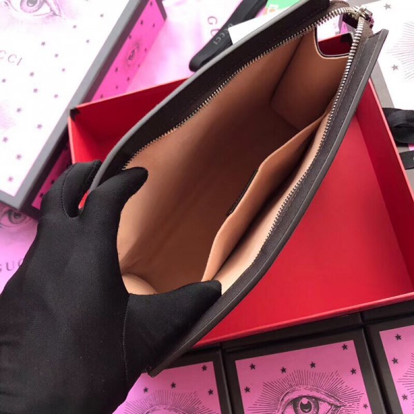 A combination of two of Gucci’s most recognizable codes: the GG motif and the Web. This pouch case is made in GG Supreme canvas, a material with low environmental impact, with House Web.