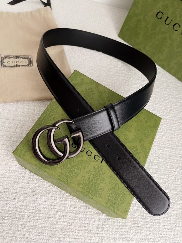 Gucci Black GG Marmont 38MM Belt with Black G Buckle