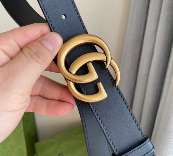 Gucci Black Leather 30MM Belt with Double G Buckle