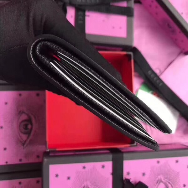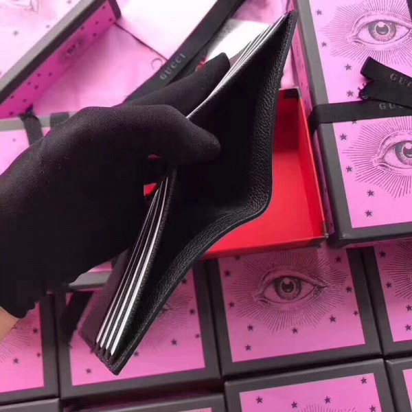 Inspired by vintage prints from the eighties, the Gucci logo is brought to the forefront. The retro-style motif is presented on the front of a bi-fold wallet in supple, textured leather.