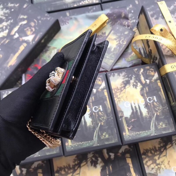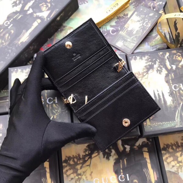 Gucci Black Rajah Chain Card Case Wallet