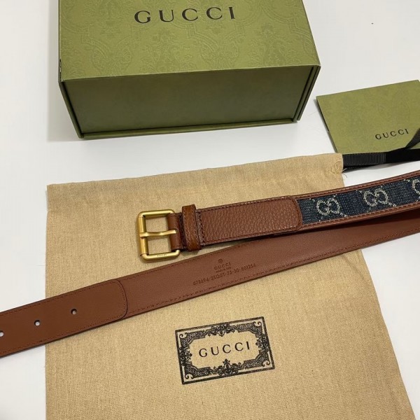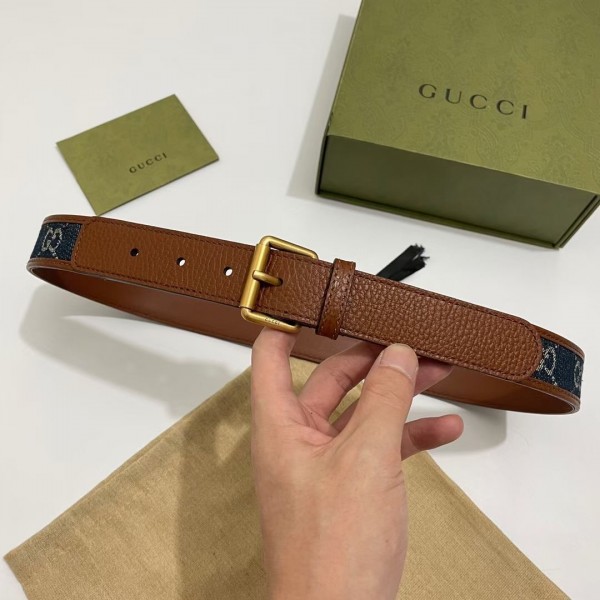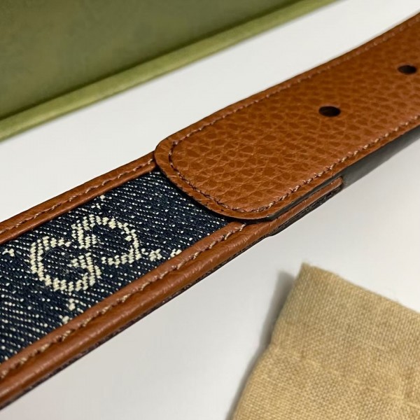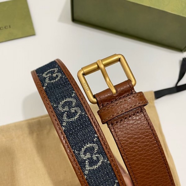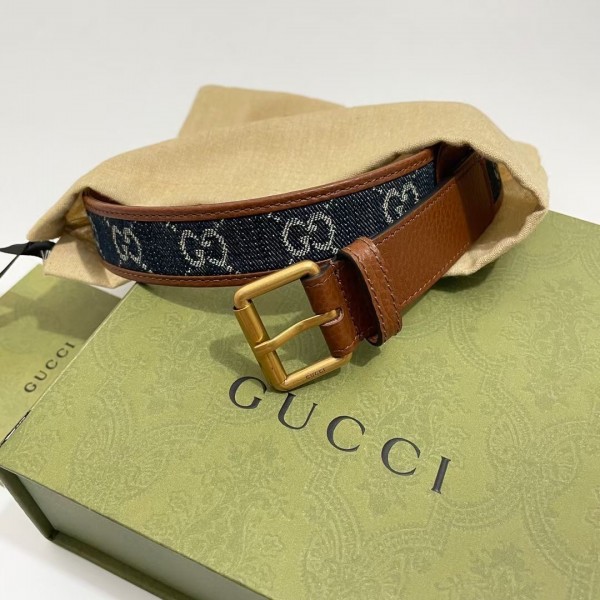 Gucci Blue GG Denim 30MM Belt with Square Buckle
