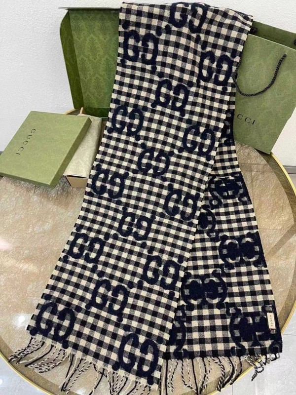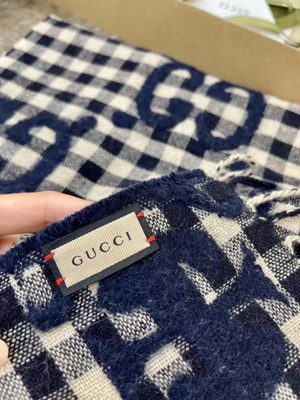 Crafted from wool jacquard in contrasting colors, this reversible scarf is defined by the House’s monogram. First used in the 1970s, the GG logo was an evolution of the original Gucci rhombi design from the 1930s, and from then it’s been an established symbol of Gucci’s heritage.
