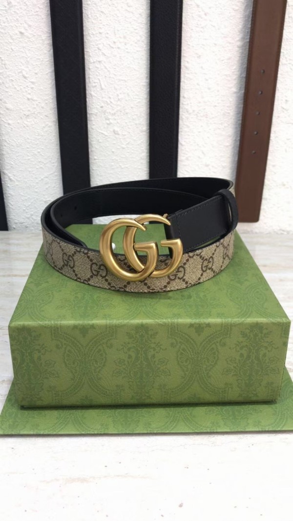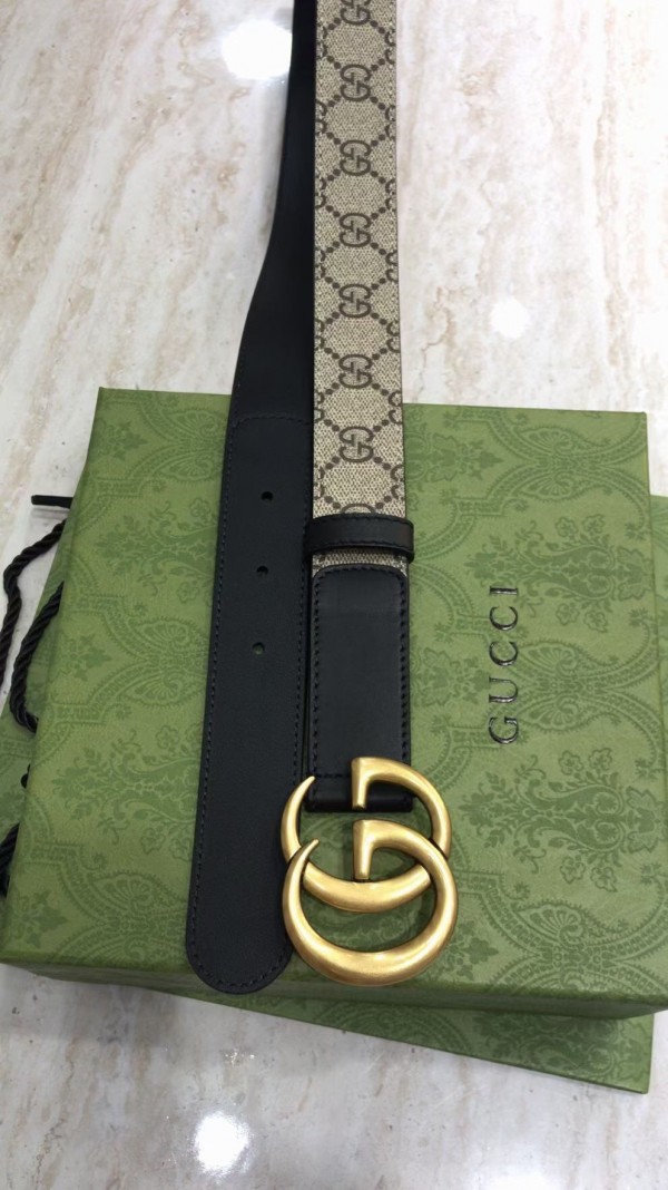 Gucci’s belt is patterned with the house’s original ‘rhombi’ pattern first introduced in the ’30s – it was later updated in the ’70s to become the ‘GG’ monogram we know today. It’s made from coated-canvas trimmed with leather and punctuated with burnished gold hardware.