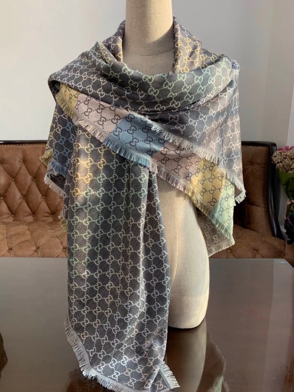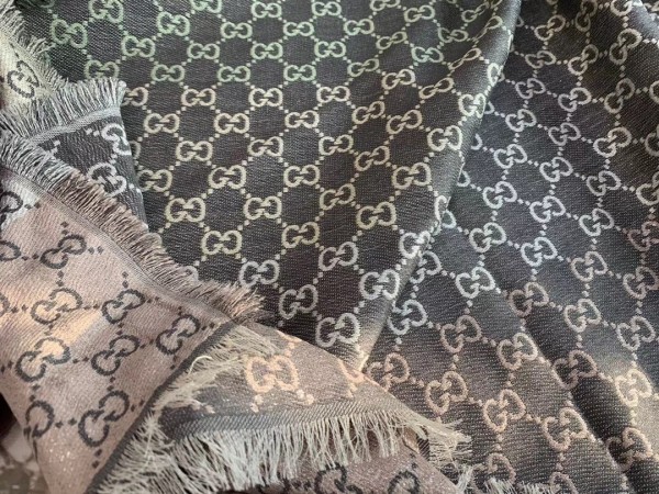 A shawl crafted using a jacquard technique and featuring the GG pattern. An evolution of the original Gucci rhombi design, the logo has become an established symbol of Gucci’s heritage. It is crafted from a blend of viscose, cotton, silk and wool for an accessory that feels supremely soft to the touch and is lightweight to wear.