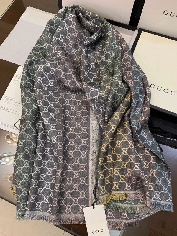 Gucci Grey GG Jacquard Shawl With Lame Details