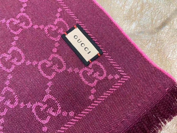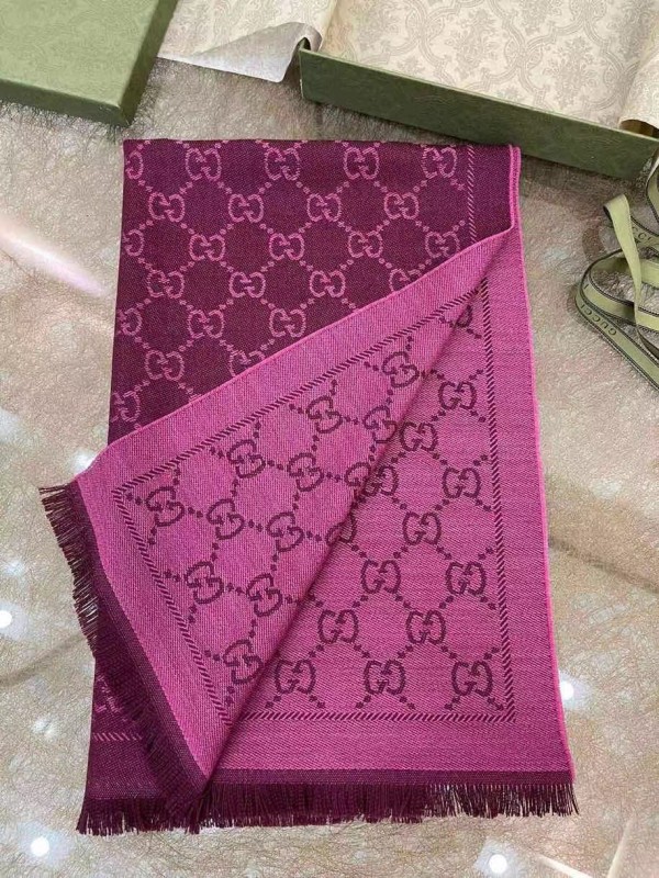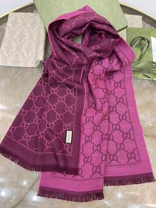 Gucci Magenta GG Jacquard Pattern Knitted Scarf