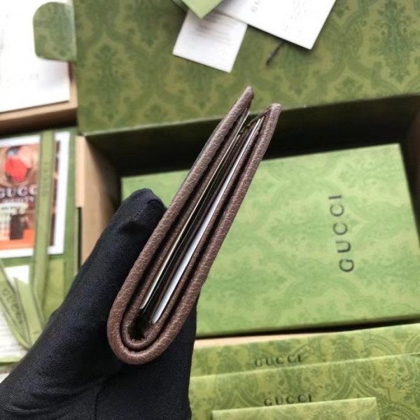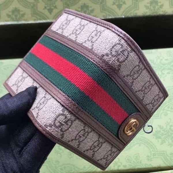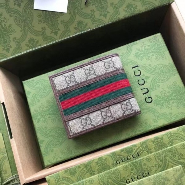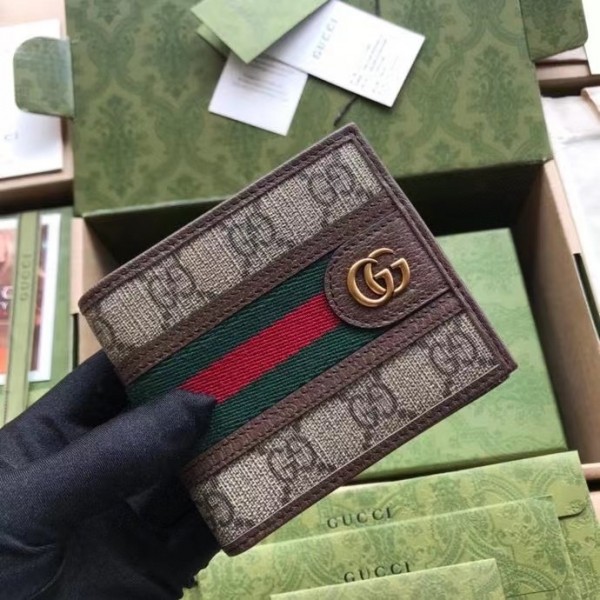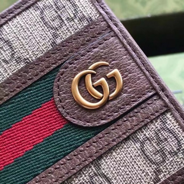 Gucci Ophidia GG Bi-fold Wallet with Brown Leather Trim