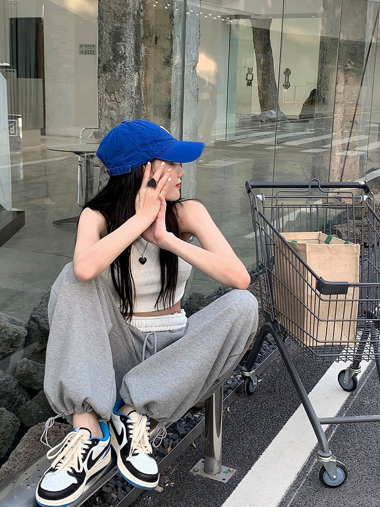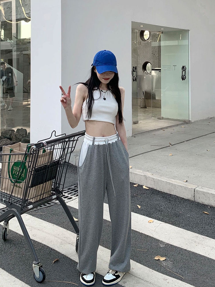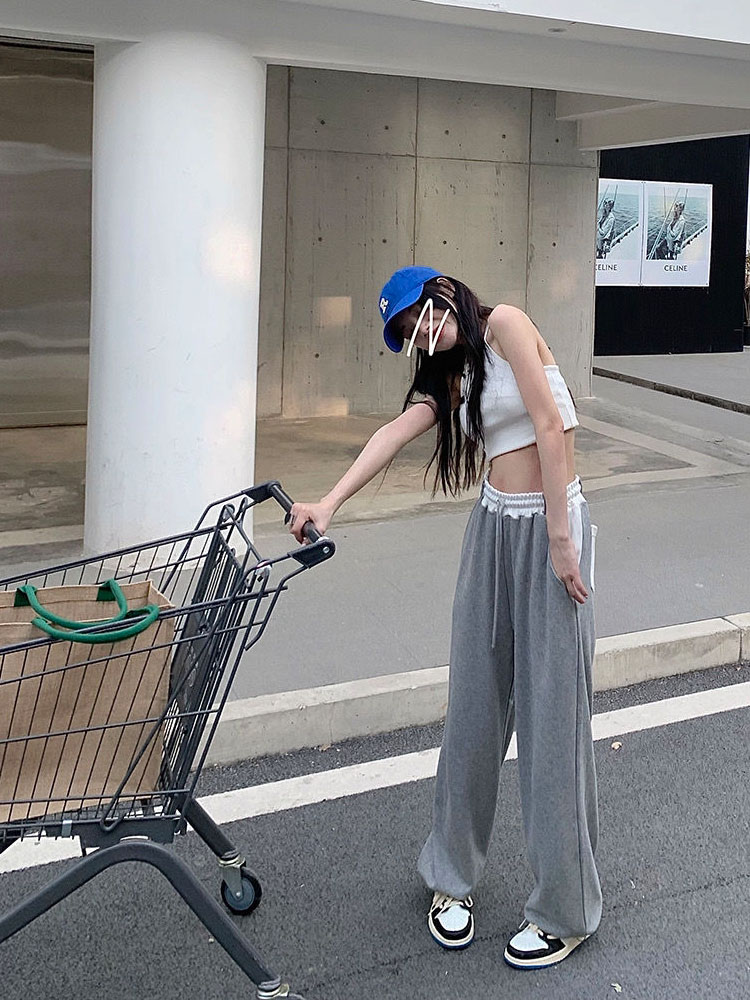 HOUZHOU Gray Wide Leg Pants Women Joggers Baggy Vintage Sweatpants Casual Streetwear Aesthetic Harajuku Trousers
