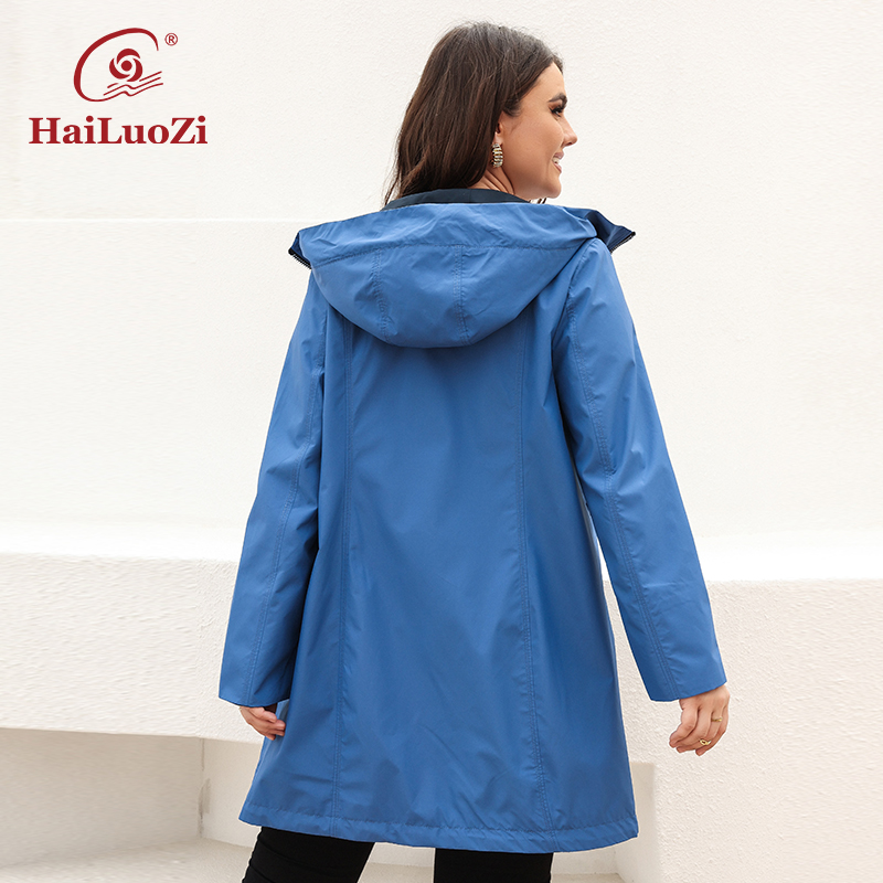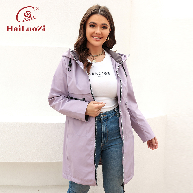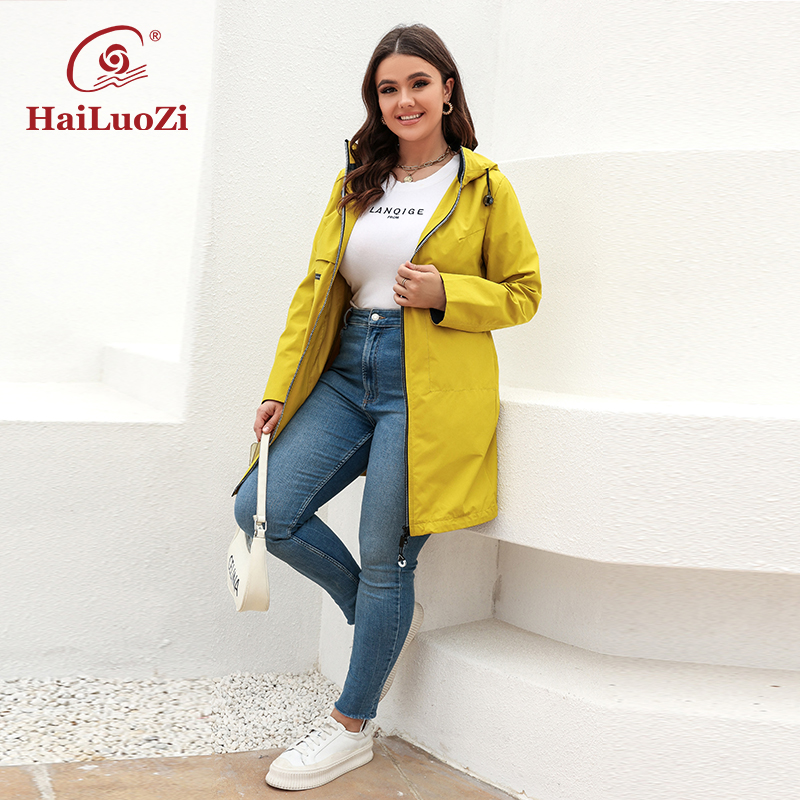 HaiLuoZi Women's Trench Coat Plus Size Jacket for Women spring Short Parka Hooded Casual Windbreaker Pockets Outwear 2202