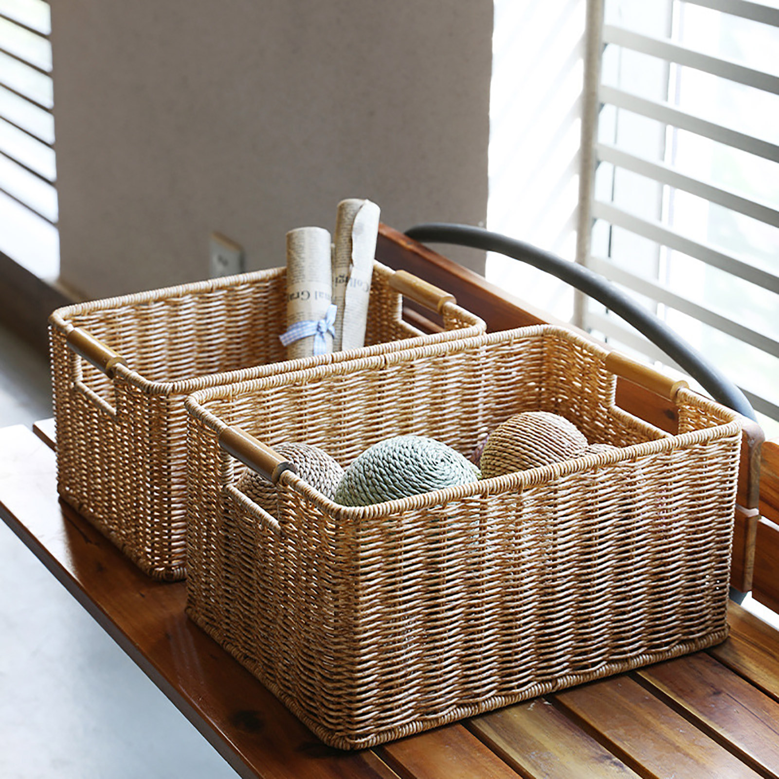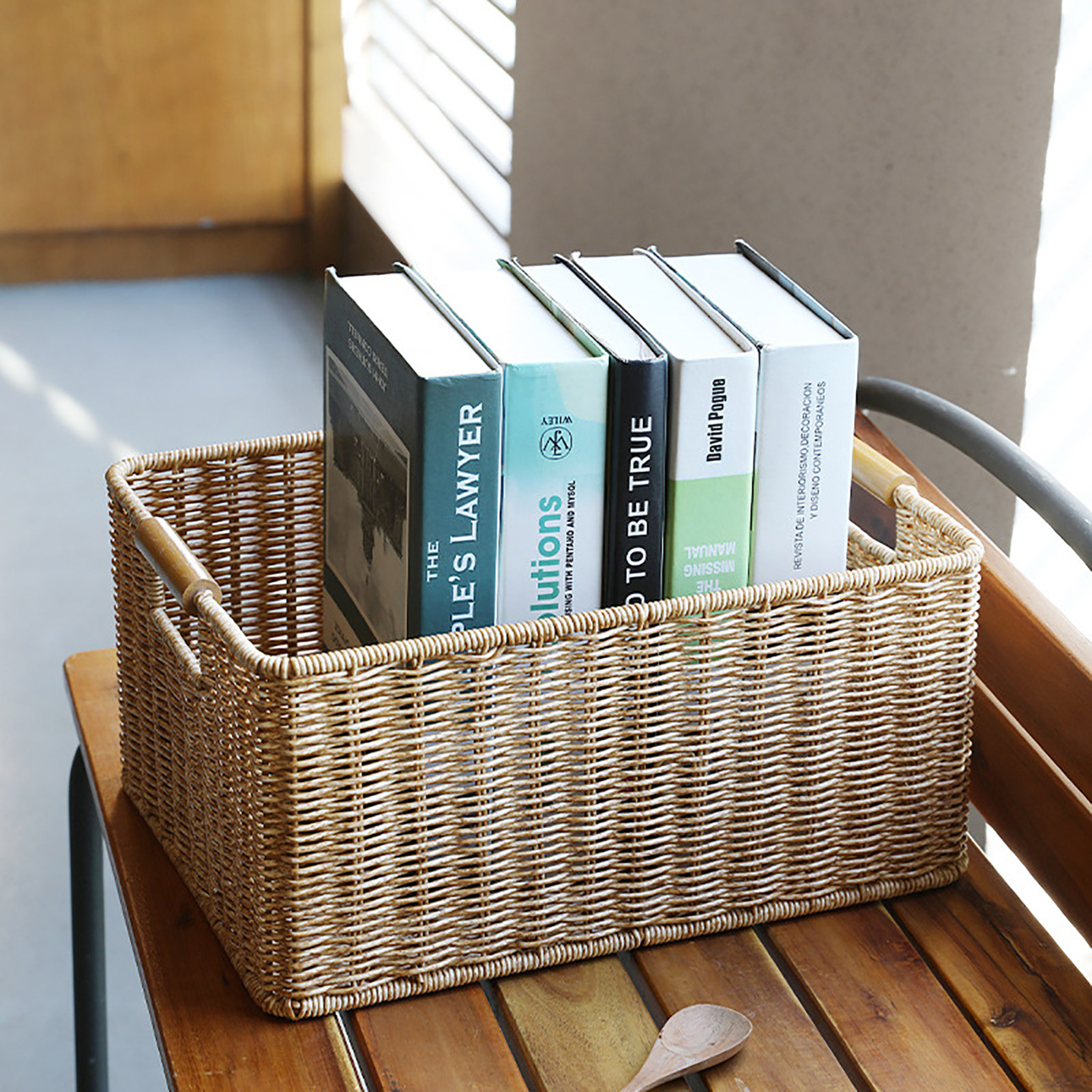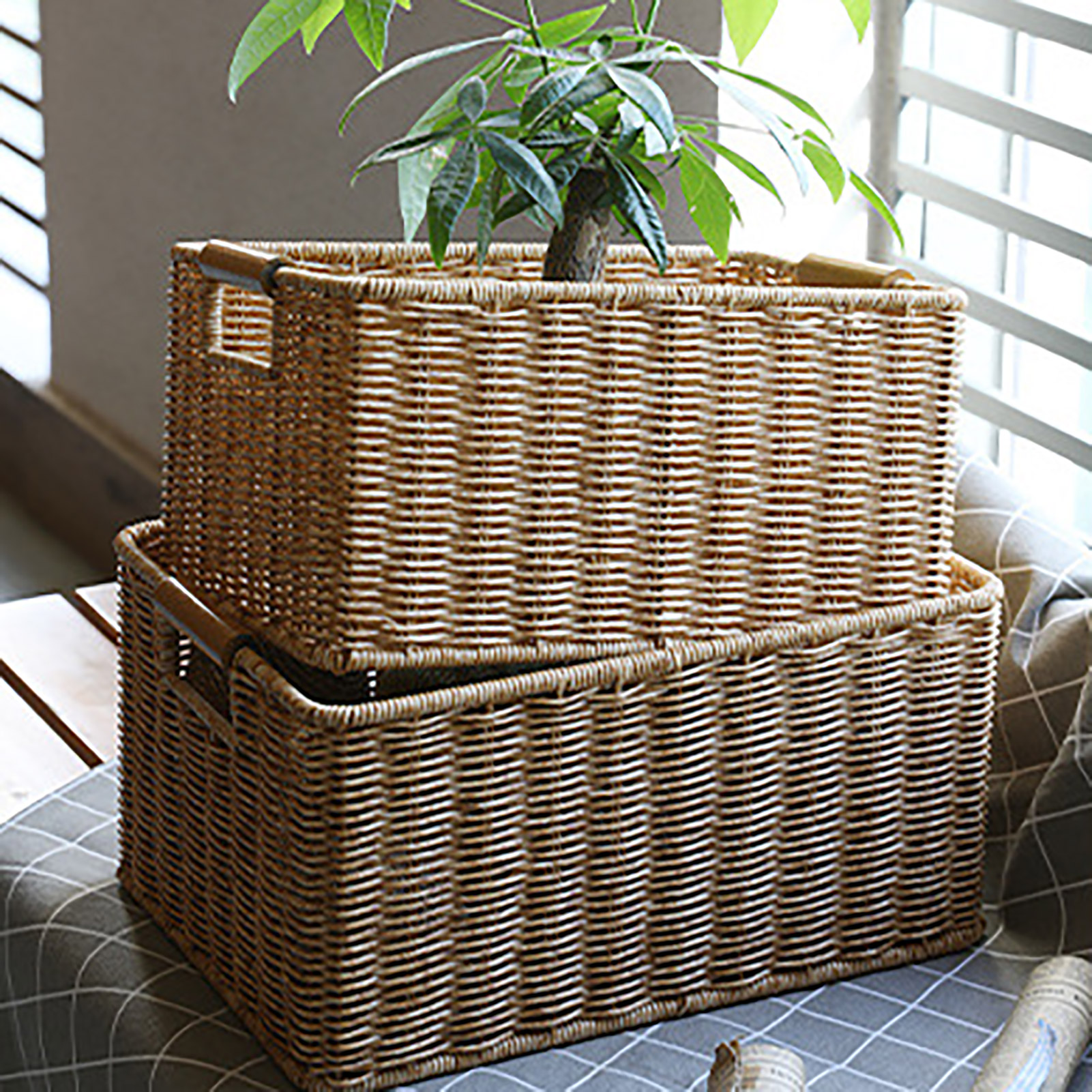 Hand-woven Rattan Wicker Storage Basket Multifunction Large Capacity Rectangular Basket For Book Toys Home Storage Organizer