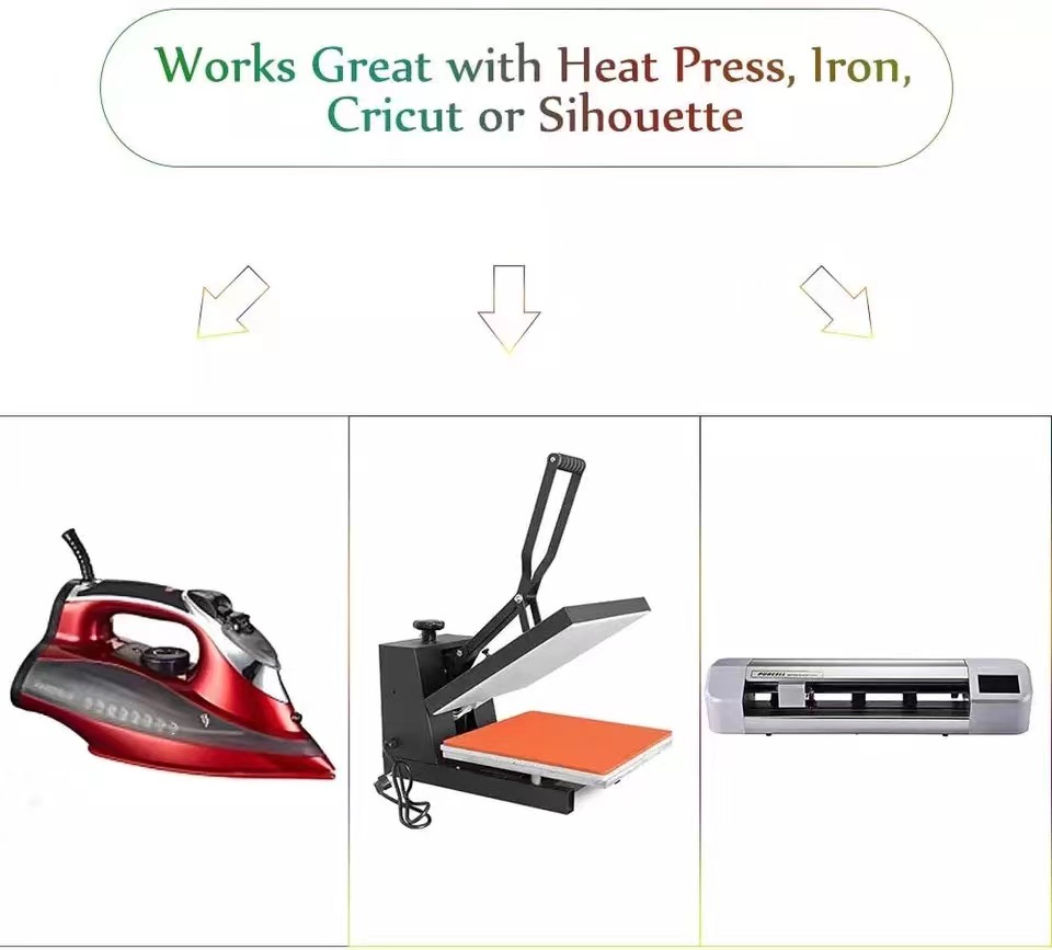 Vinyl transfer is now the most popular heat press material. vinyl can be cut by a vinyl cutter to print name, number, logo and design on T-shirts,sports wear and other garments by a heat press. It is very durable, stretchable, washes fast and will last life of garments.Process the image on your computer, cut the picture contour with cutter plotter, then peel off the part you don’t need. At last, press the image on T-shirt or other fabric products.
