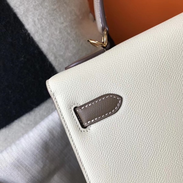 Hermes Bi-color Kelly 32cm Epsom Bag White/Taupe GHW