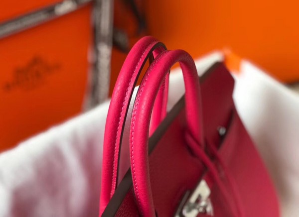 Hermes Birkin 25cm Bag In Rose Red Clemence Leather