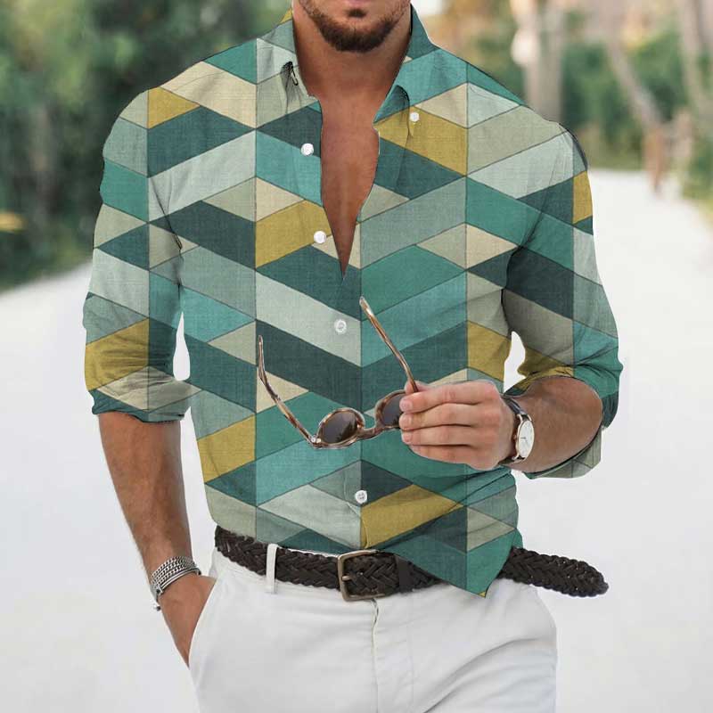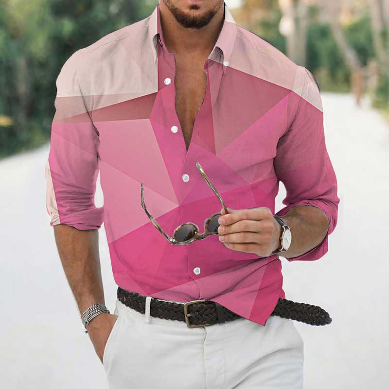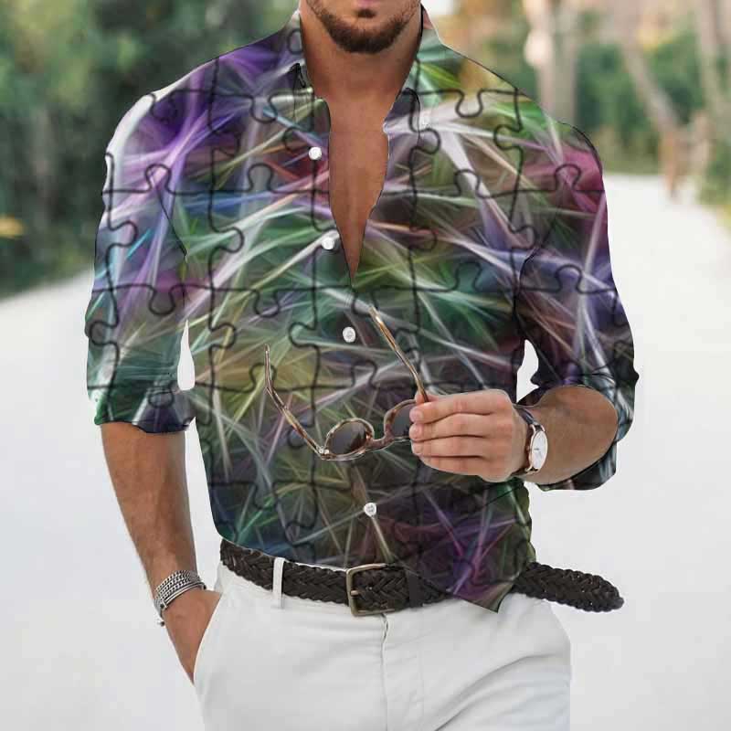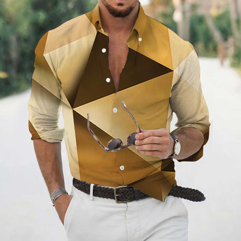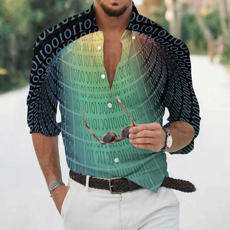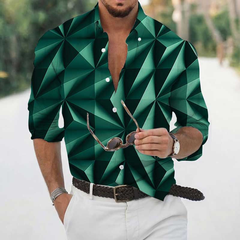 High Spring Autumn Men's Shirts Geometric 3D Printing Long Sleeve Men's Casual T-Shirt Tops Streetwear