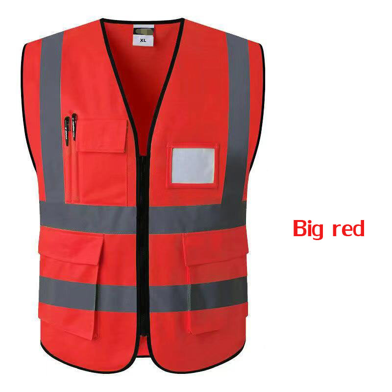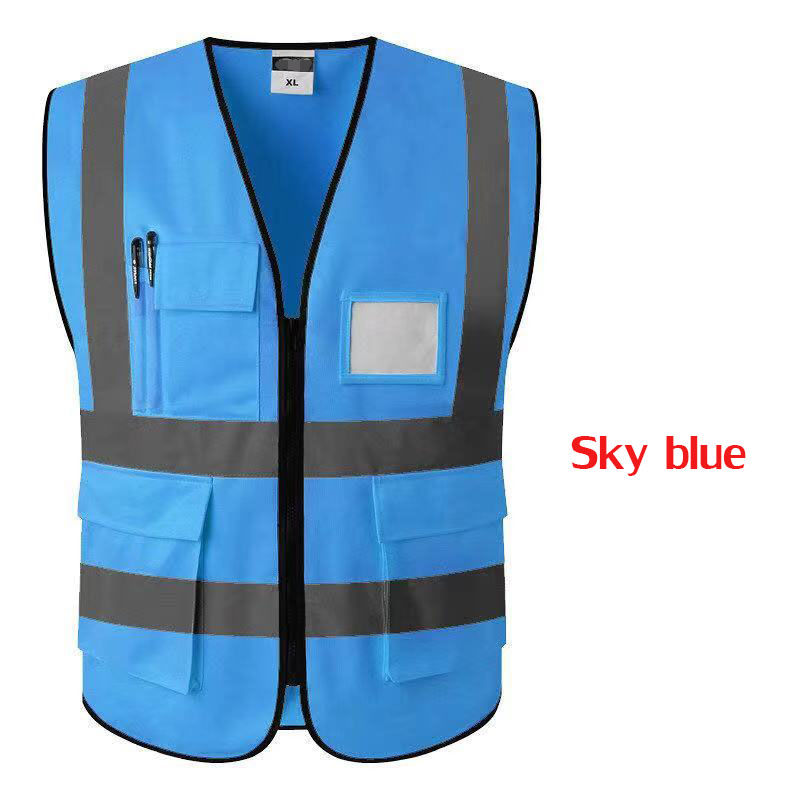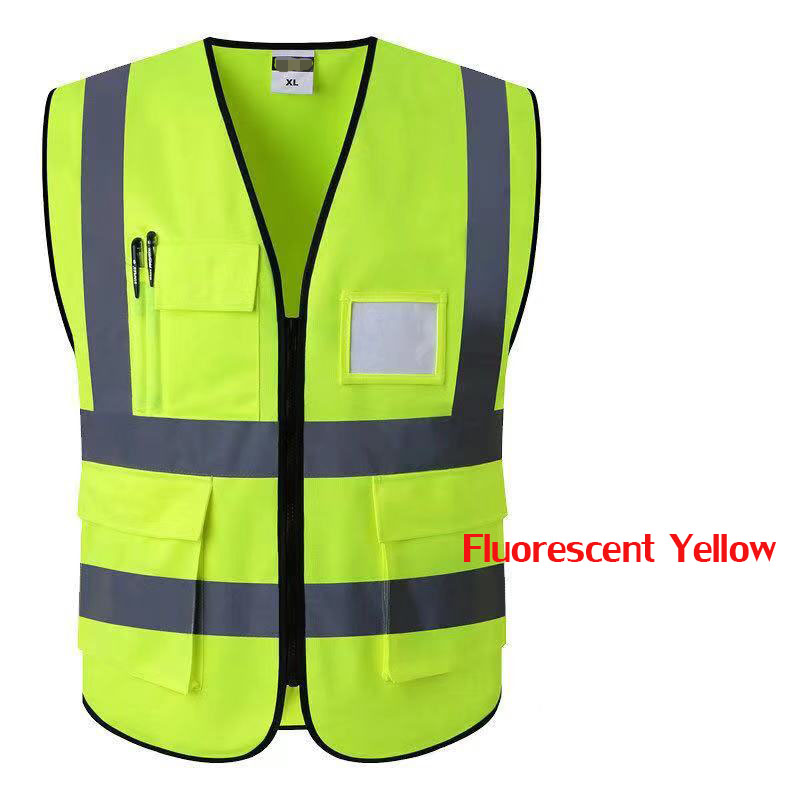 High Visibility Zipper Front Safety Vest With Reflective Strips Bicycle and Motorcycle Riding Safety Clothing Multi-Pockets