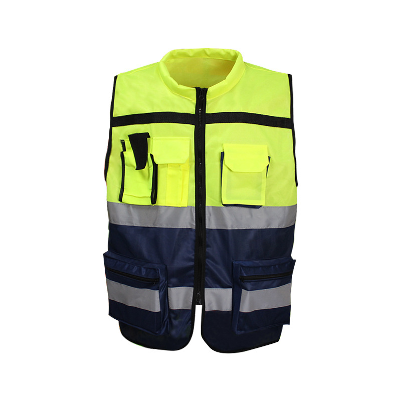 Two Tone Yellow Blue Safety Vest Reflective With Zipper and Pockets Hi Vis Work Waistcoat For Men And Women