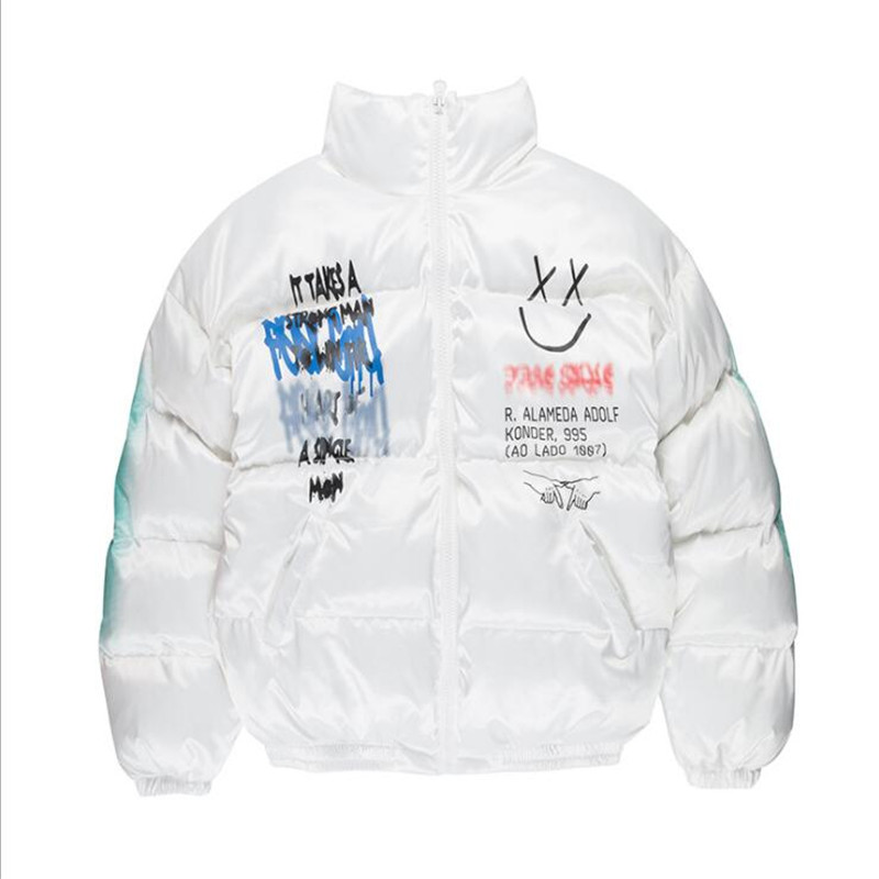 Hip Hop Thick Jacket Parka Happy Graffiti Print Men Windbreaker Streetwear Harajuku Winter Padded Jacket Coat Warm Outwear