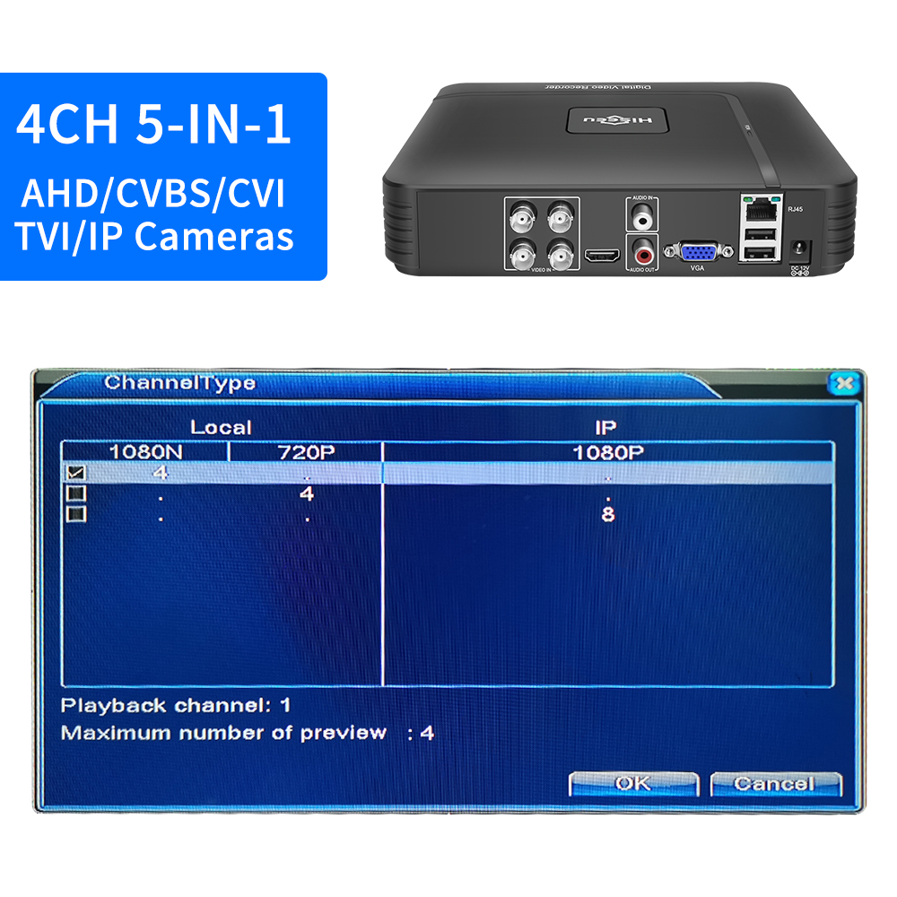 Hiseeu 5 in 1 CCTV Mini DVR TVI CVI AHD CVBS IP Camera Digital Video Recorder 4CH 8CH AHD DVR NVR CCTV System P2P Security